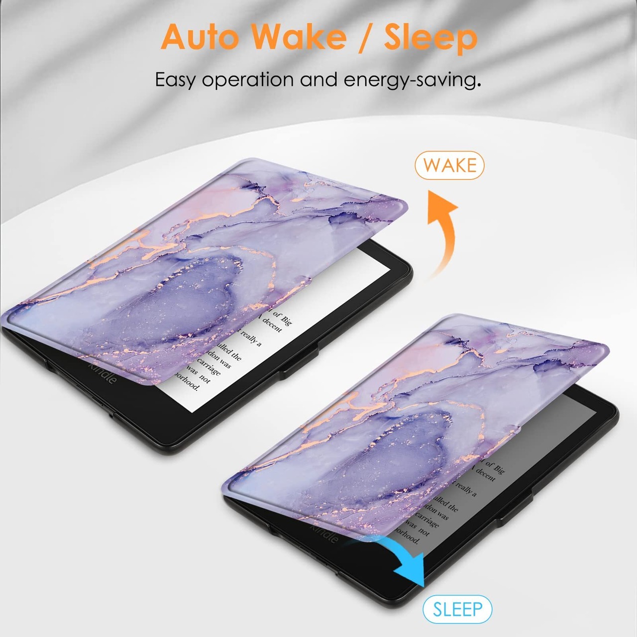 Fintie for Kindle Paperwhite ケース/Paperwhite シグニチャー エディション (第11世代) 2021年発売 6.8インチ 用 保護カバー 軽量 薄型 オートスリープ機能付き(柄Xマーブルパープル)