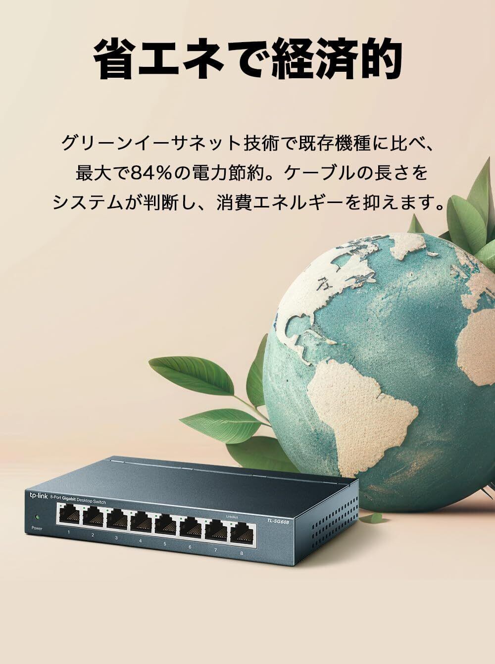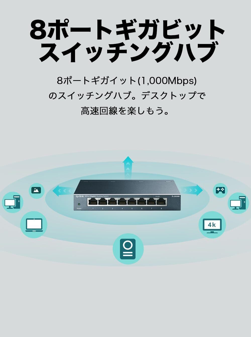 TP-Link 8ポート スイッチングハブ 10/100/1000Mbps ギガビット 金属筺体 設定不要 TL-SG608