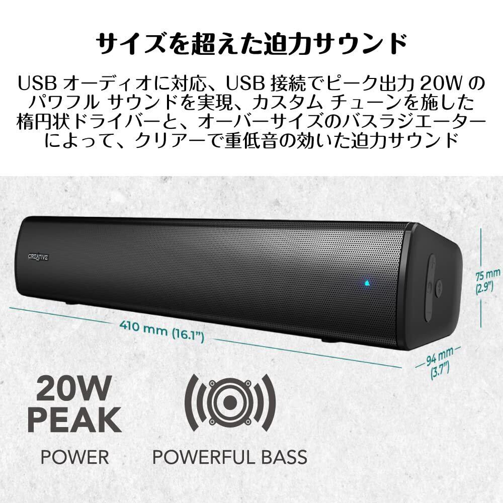 クリエイティブ・メディア Creative Stage Air V2 幅41cm AUX/BT/USB オーディオ 最大20W 重低音パッシブ ラジエーター 約6時間連続再生バッテリー搭載 PC/Mac/スマホ対応 サウンドバー SP-STGEAV2-BK