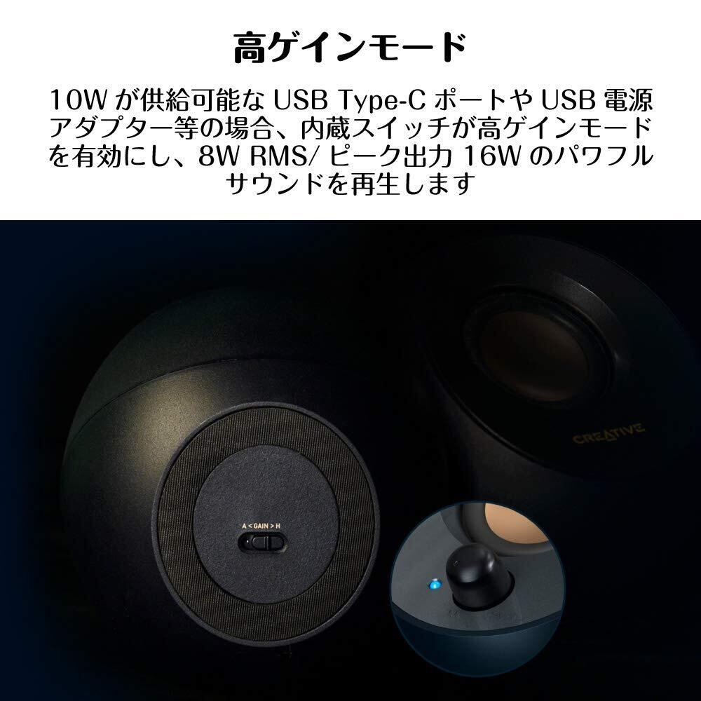Creative Pebble V2 USB Type-C給電採用アクティブ スピーカー 8W RMS ピーク出力16W パワフル出力 45°上向きドライバー 重低音 パッシブ ドライバー SP-PBLV2-BK