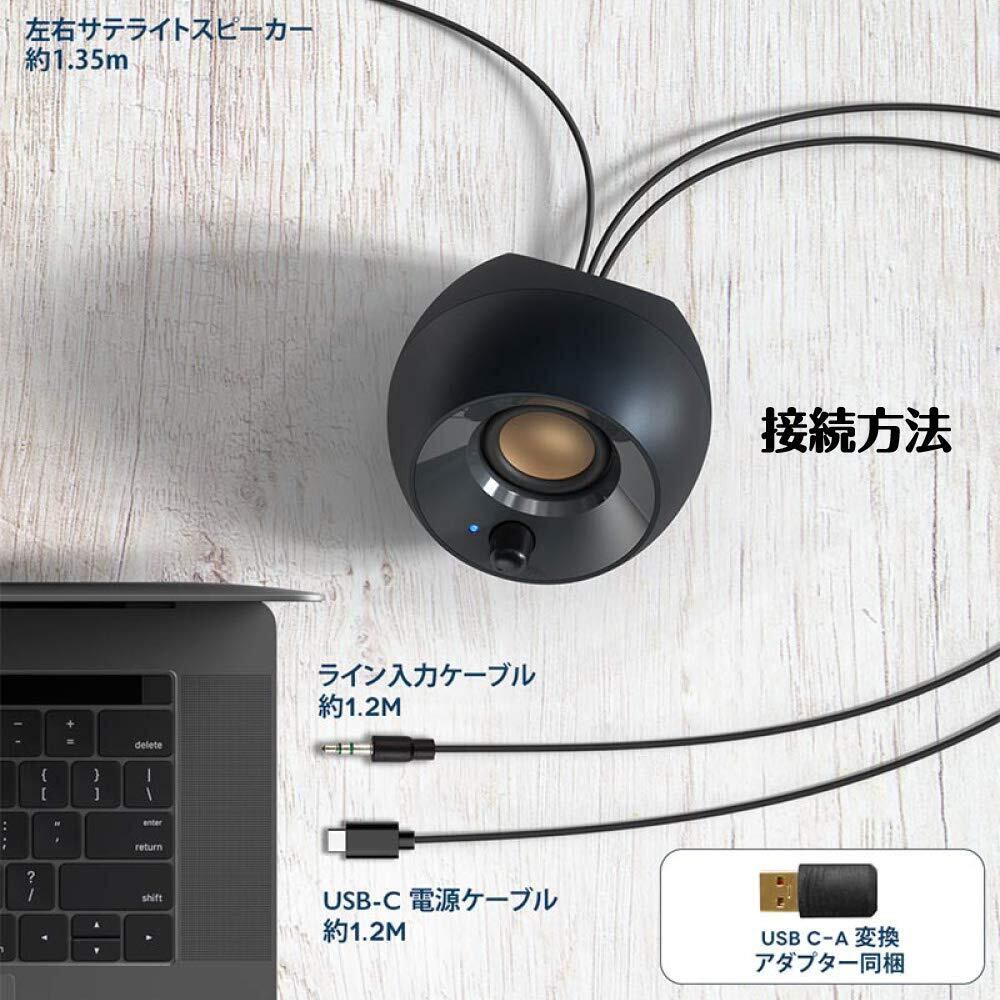 【ケーブル2本接続タイプ:USBから電源 & アナログケーブルで音声を入力】【USB Type-C & A 対応】USB Type-C接続では8W RMS(ピーク出力16W)のパワフル サウンドを実現