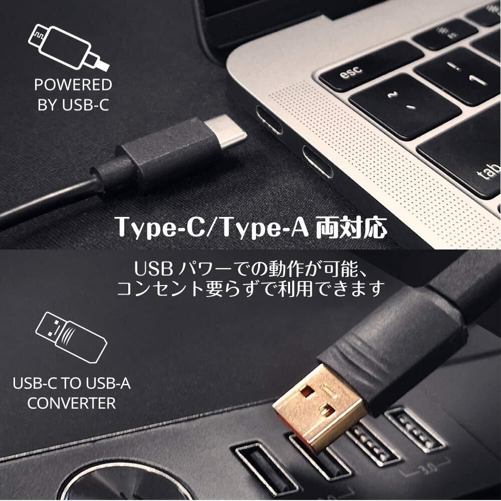 【 PC、Mac、スマホ、使い方次第でテレビにも! 】電源ケーブルをノート パソコンのUSB Type-Cポートに接続してUSB電源で動作が可能なほか、USB C-A変換アダプターも同梱しており、デスクトップ パソコンなどのUSB Type-Aポートにも接続可能。もちろん、市販のUSB Type-CまたはType-Aポートの電源アダプターでも動作させることが可能。オーディオ入力は3.5mmステレオ ミニジャックを備えており、パソコンはもちろん携帯音楽プレーヤーやスマートフォン等と簡単接続。