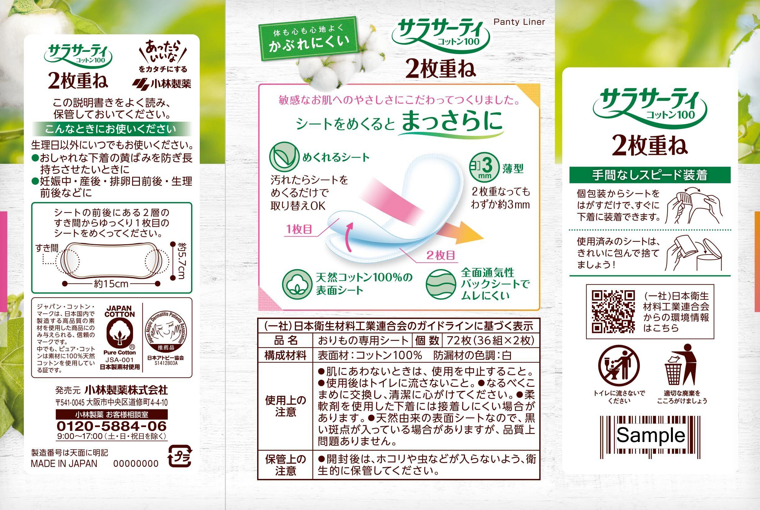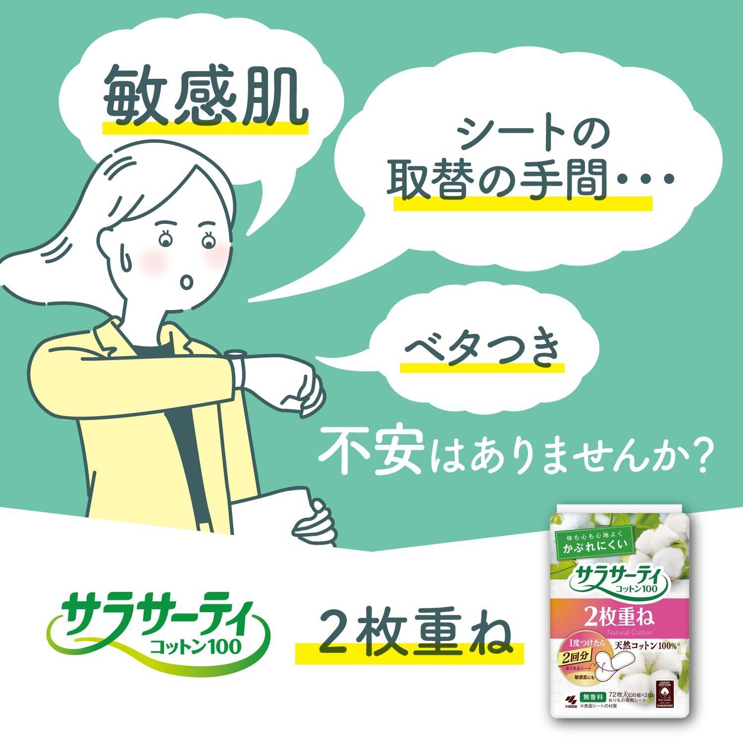 サラサーティ 【まとめ買い】 2枚重ねのめくれるシート 無香料 おりものシート 72枚(36組×2枚) ×2個