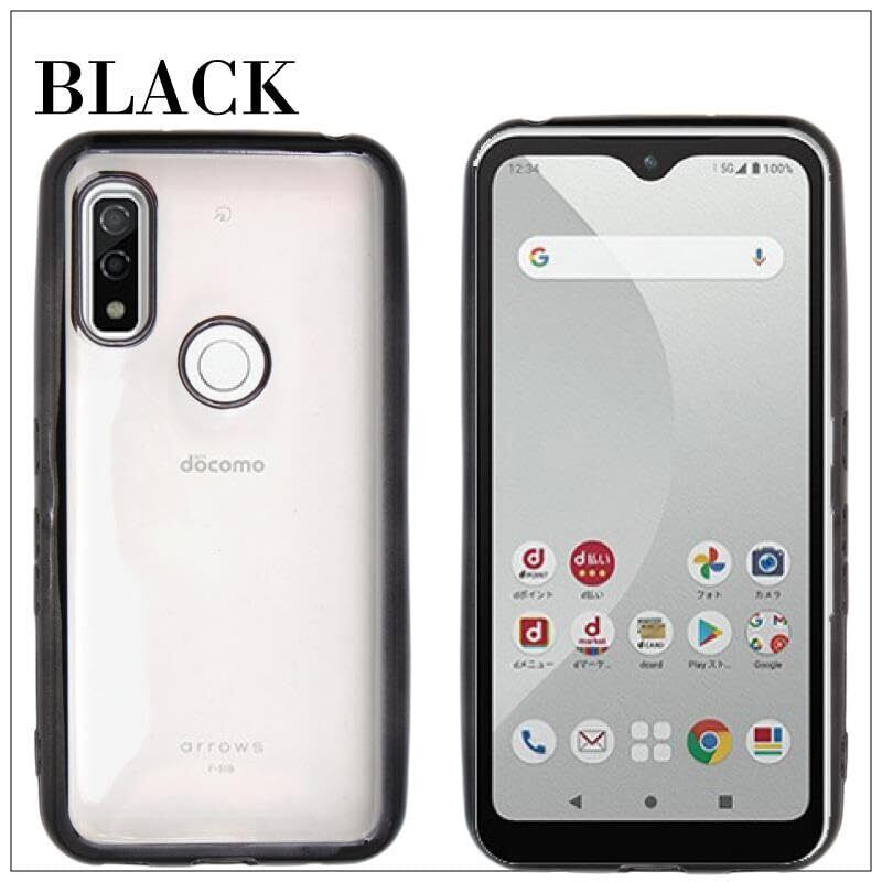 arrows We 用 ケース クリア F-51B CG01 アローズwe カバー スマホケース 透明 耐衝撃 TPU 薄型 軽量 メッキ加工 ソフトケース 落下防止 擦り傷防止 レンズ保護 ブラック 互換性あり | hananoki