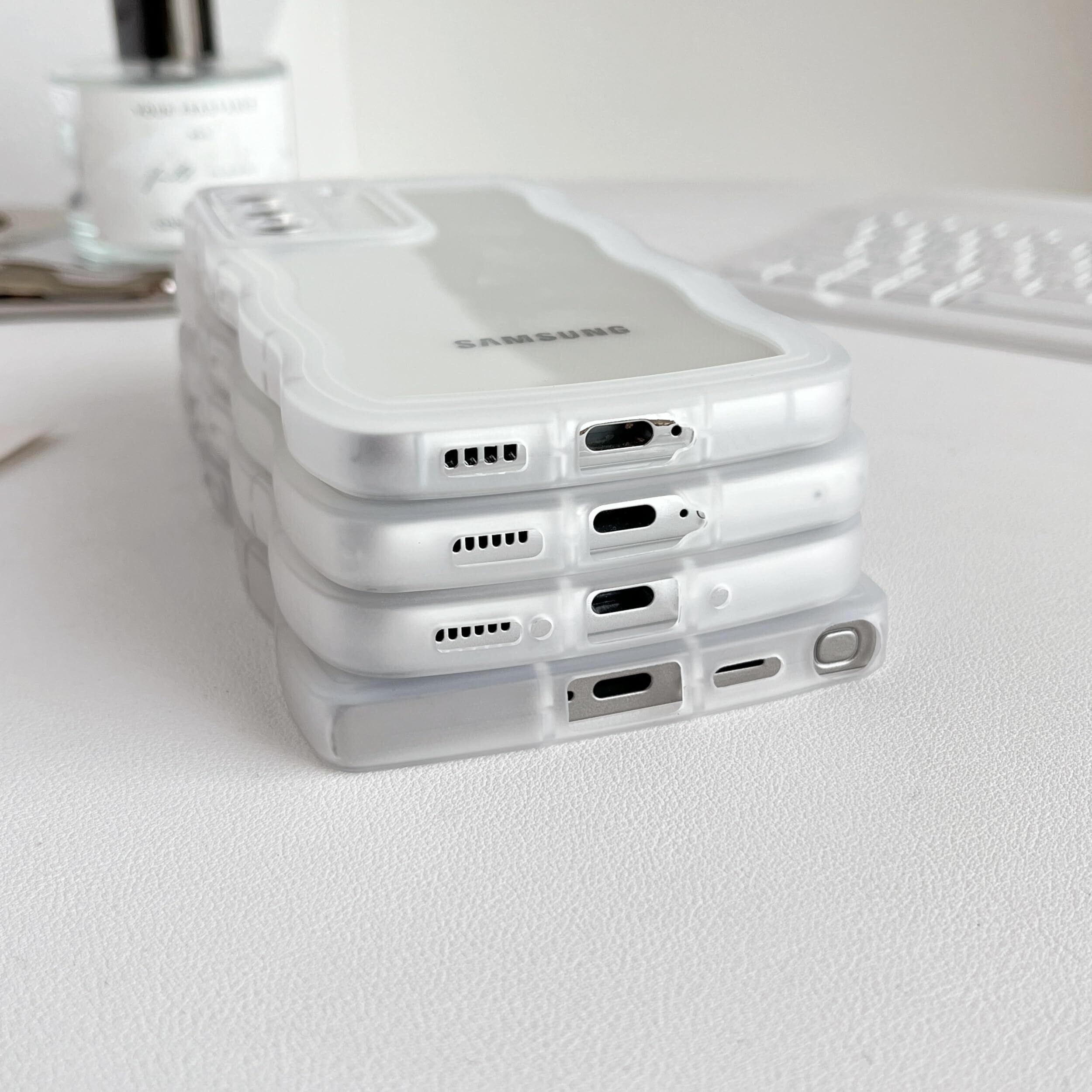 ZTOFERA Samsung Galaxy A55 5G ケース用、クリア透明可愛いうねうね波状フレームおしゃれデザイン、ソフトTPU滑り止め傷防止耐衝撃性の電話カバーSamsung A55 ケース用、白い | hananoki