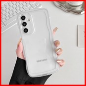 ZTOFERA Samsung Galaxy A55 5G ケース用、クリア透明可愛いうねうね波状フレームおしゃれデザイン、ソフトTPU滑り止め傷防止耐衝撃性の電話カバーSamsung A55 ケース用、白い