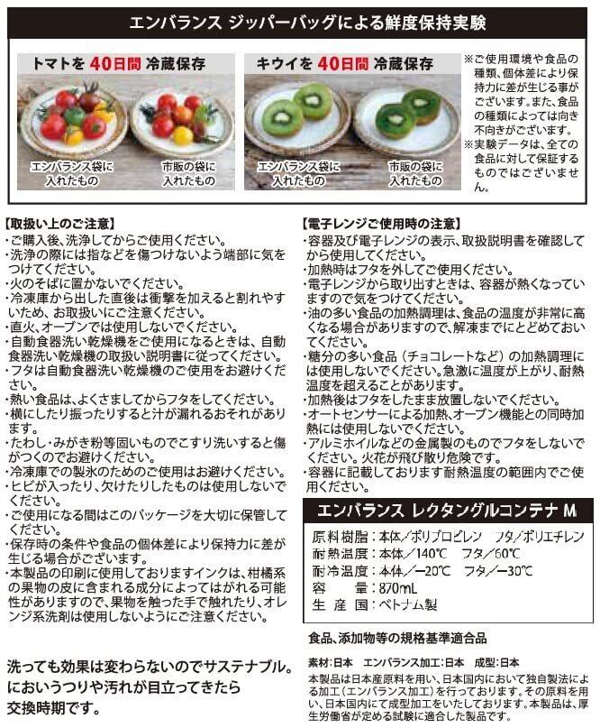 ・本体:ポリプロピレン(エンバランス加工)・フタ:ポリエチレン(エンバランス加工)