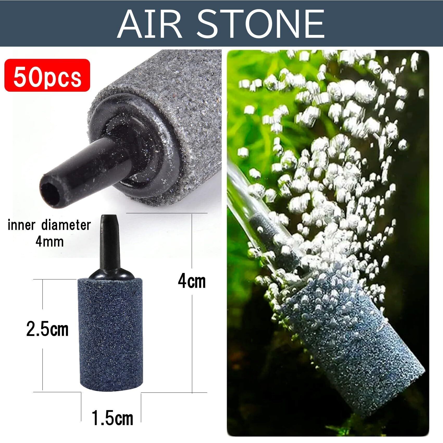 商品詳細: エアストーン50個セット 【サイズ】 15×25mm(全長40mm)/ チューブ差し込み口内径4mm 【重量】約8g/個 【材質】 石英砂 ※モニターの環境等により、色の見え方に若干差が生じる場合がございます。予めご了承ください。