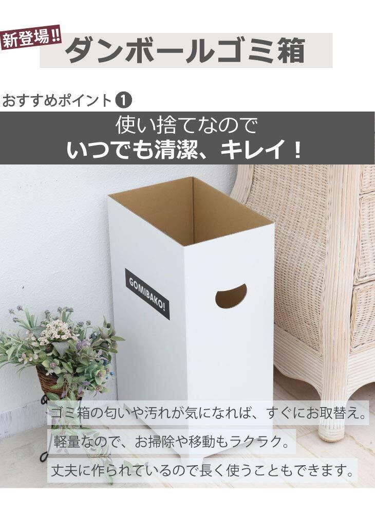 【使いやすさ抜群の設計!】 : 段ボール素材を使用しているため、軽量で扱いやすいのが魅力。持ち運びも簡単で、必要なときにサッと出せます。また、組み立ても簡単で、収納にも困らないため、どんな場所でも気軽に使用できます。このダンボールゴミ箱で、すっきりとした空間を実現しましょう!