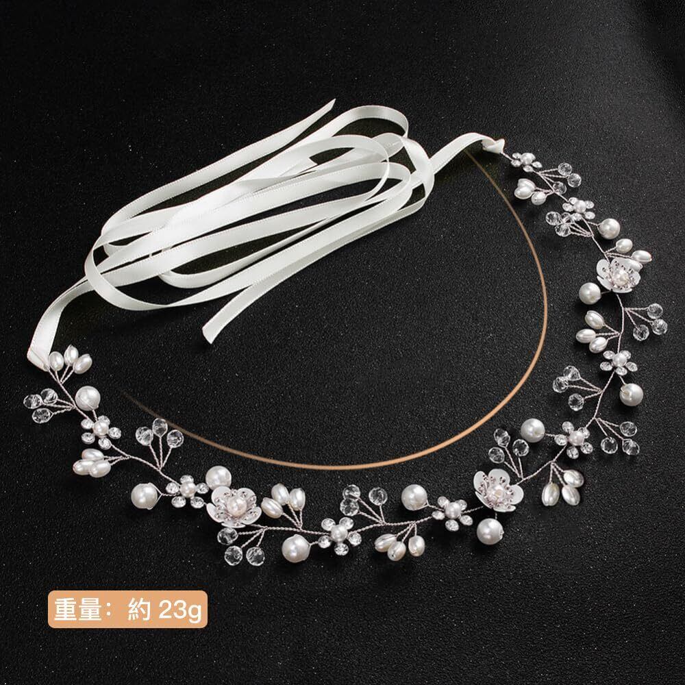 サムコス 髪飾り 花 パール 花かんむり リボン ホワイト ヘッドドレス クリスタルビーズ 花冠 ヘアアクセサリー 結婚式 発表会 披露宴 卒業式 パーティー ダンス 和装 撮影 写真 子供 大人用 (A,シルバー)