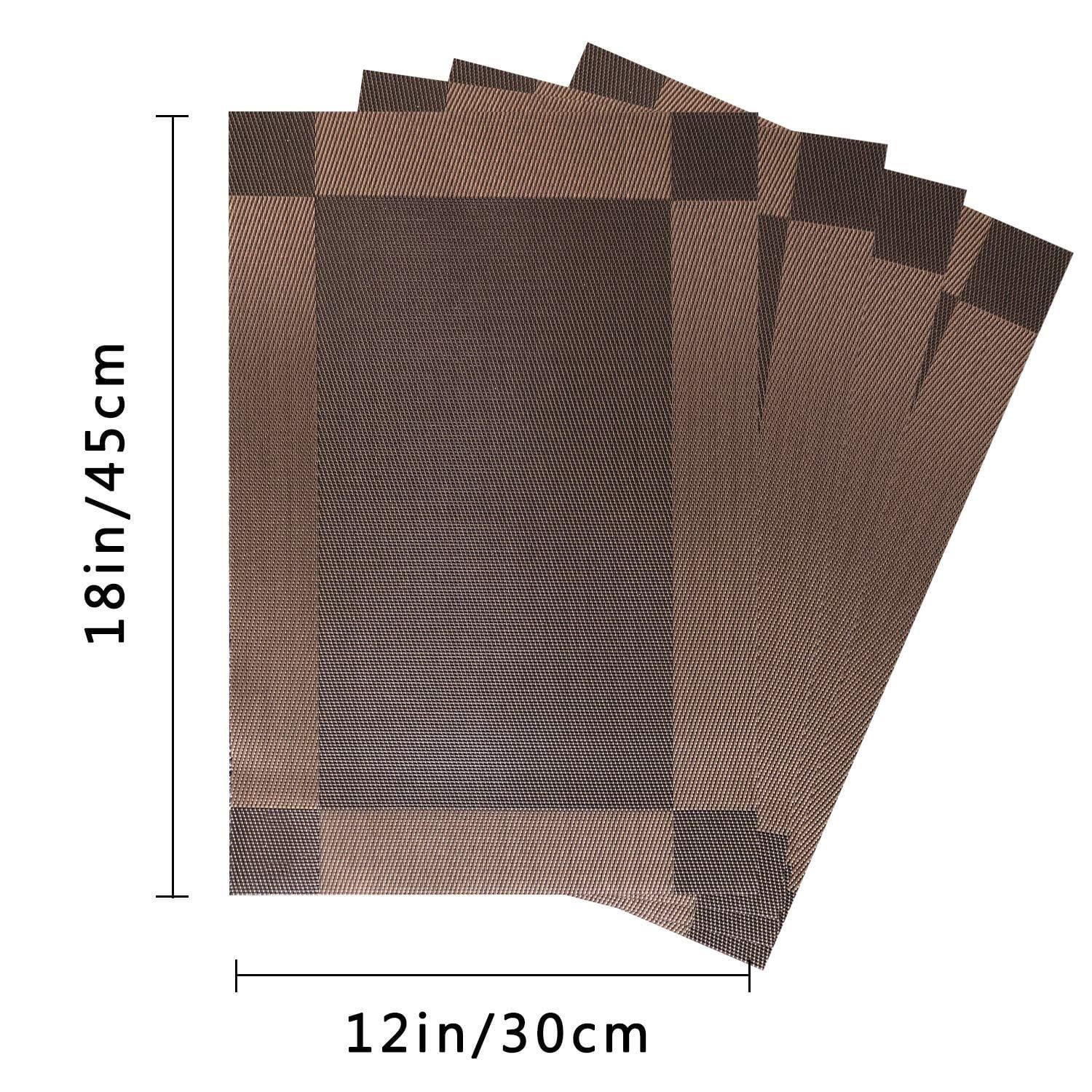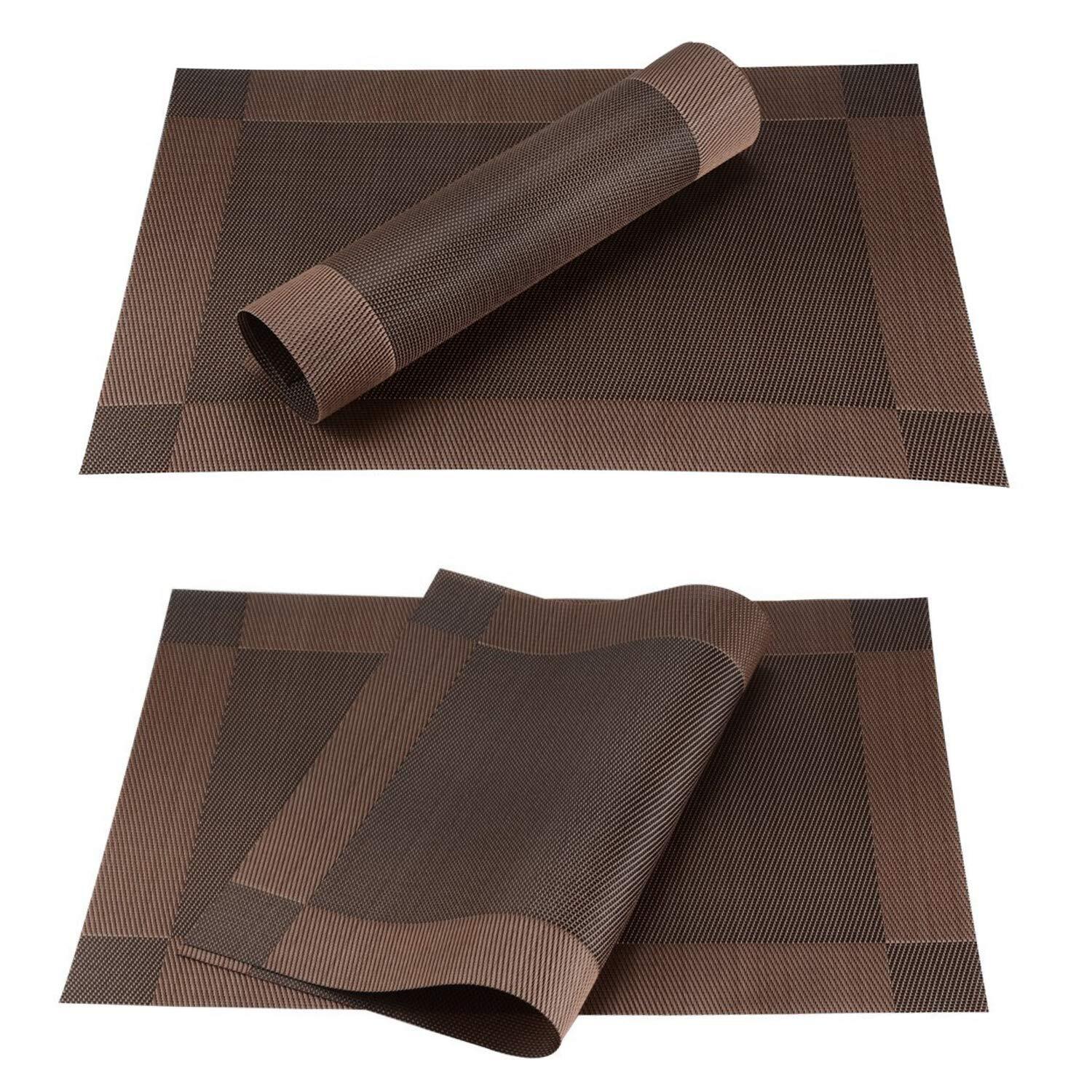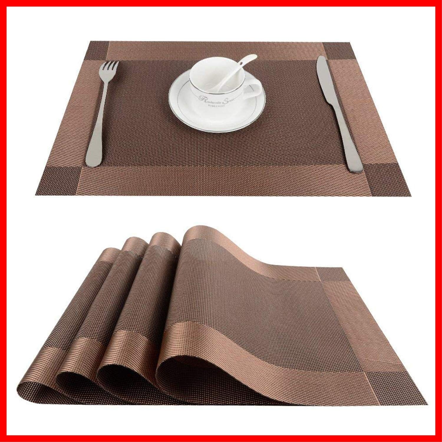 Topfinel ランチョンマット おしゃれ 北欧 全6色選択 防水 防汚 断熱 滑り止め お手入れ簡単 PVC ブラウン×4枚