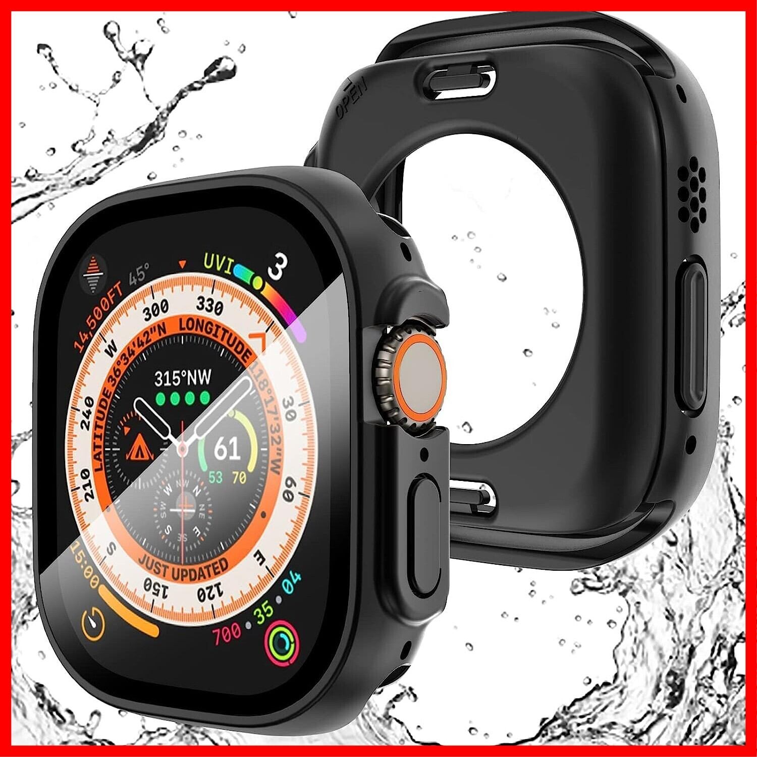 for Apple Watch ケース Apple Watch Ultra3/Ultra2/Ultra 49mm 用 ケース 360度全面防水 バンド 水泳・スポーツ専用 ガラスフィルム 一体型 360フルボディ防水 アップルウォッチケース 49mm対応 ブラック