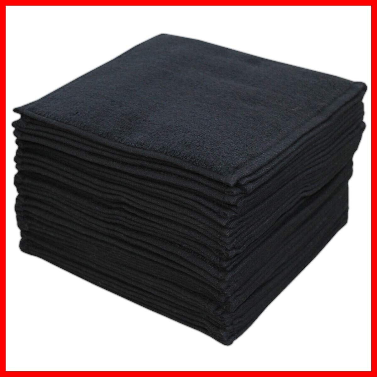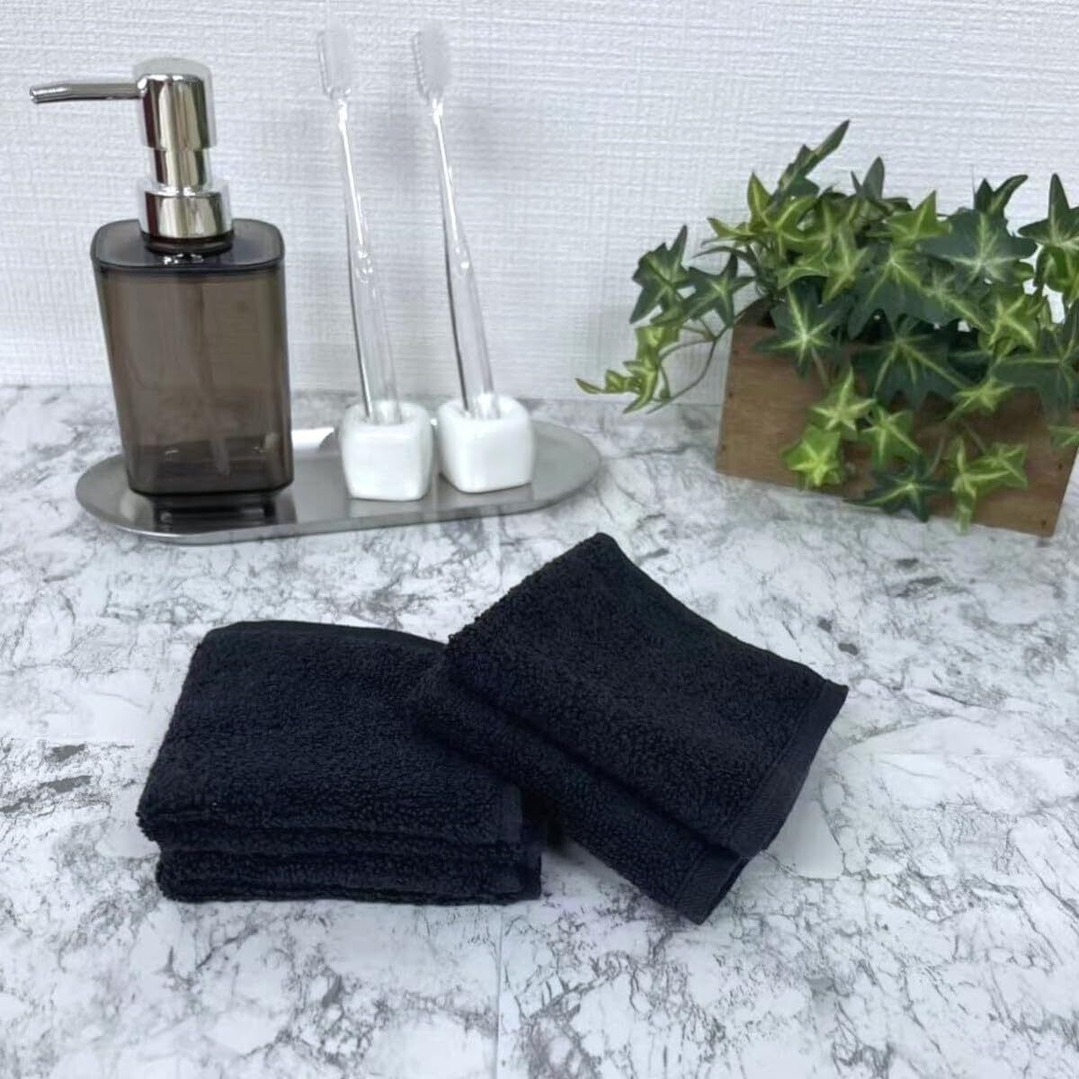 洗い替え便利な 綿100% ふわふわ 無撚糸 ミニタオル ハンカチ ブラック 40枚組 業務用(20×20㎝) 343737