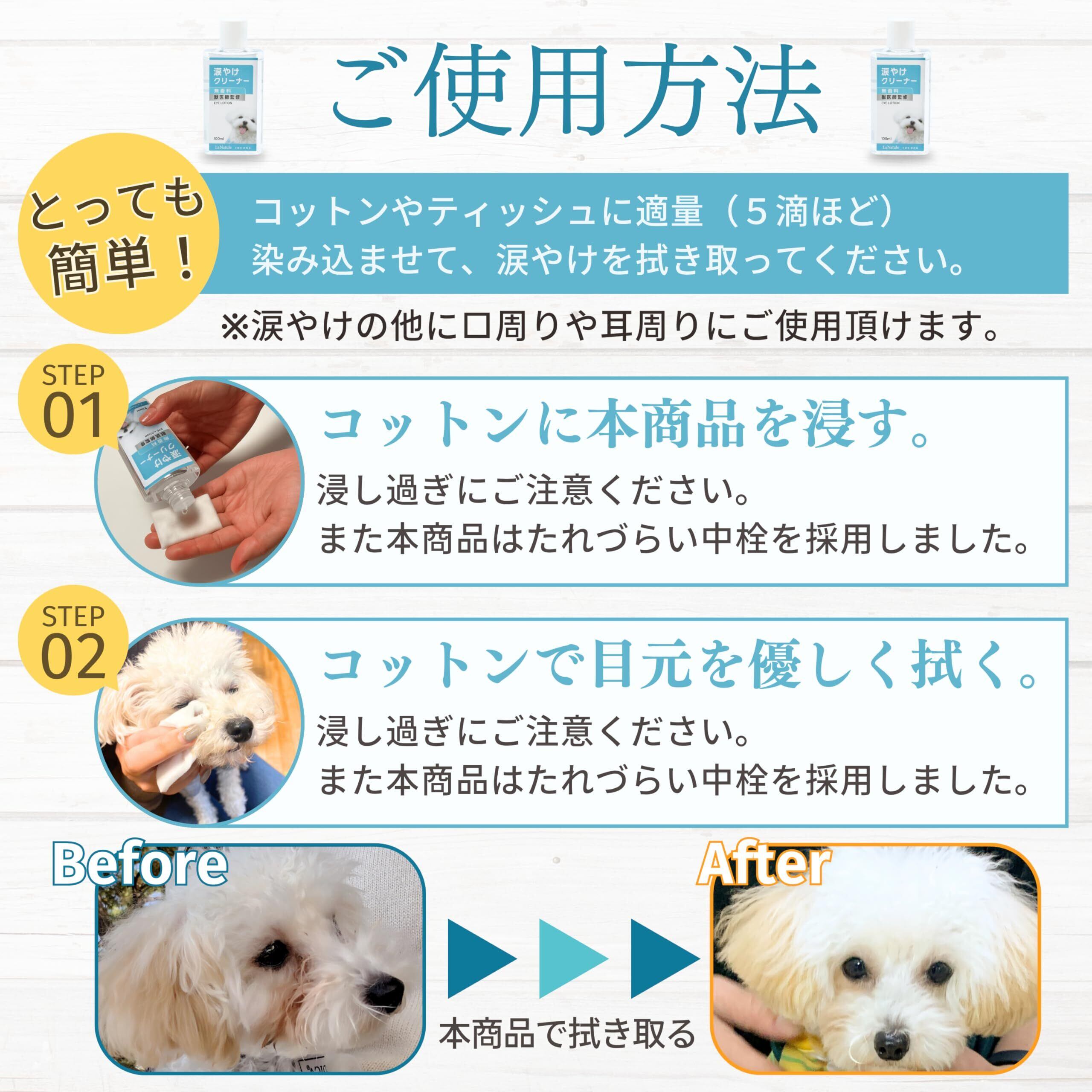 【毎日のケアがペットの健康をサポート】:涙やけは、ペットにとって見た目だけでなく、健康にも影響を及ぼす可能性があります。日常的に使用することで、涙やけの予防や改善が期待でき、愛するペットの健康管理に貢献します!