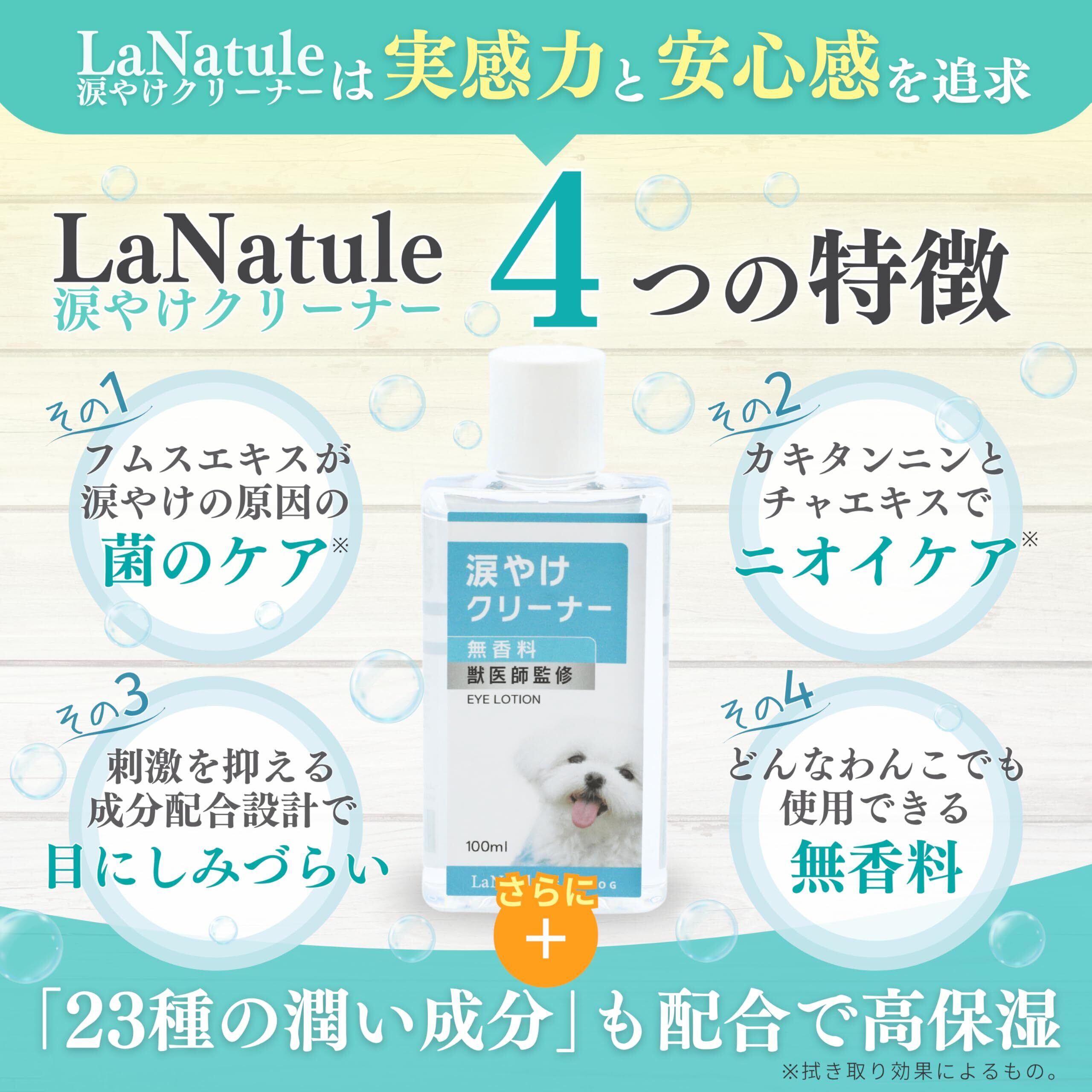 [【獣医師監修】涙やけ クリーナー 液 犬 猫 LaNatule わんちゃんライフ フムスエキス 保湿 100ml]で、愛するペットの目元をすっきり綺麗に守りましょう!