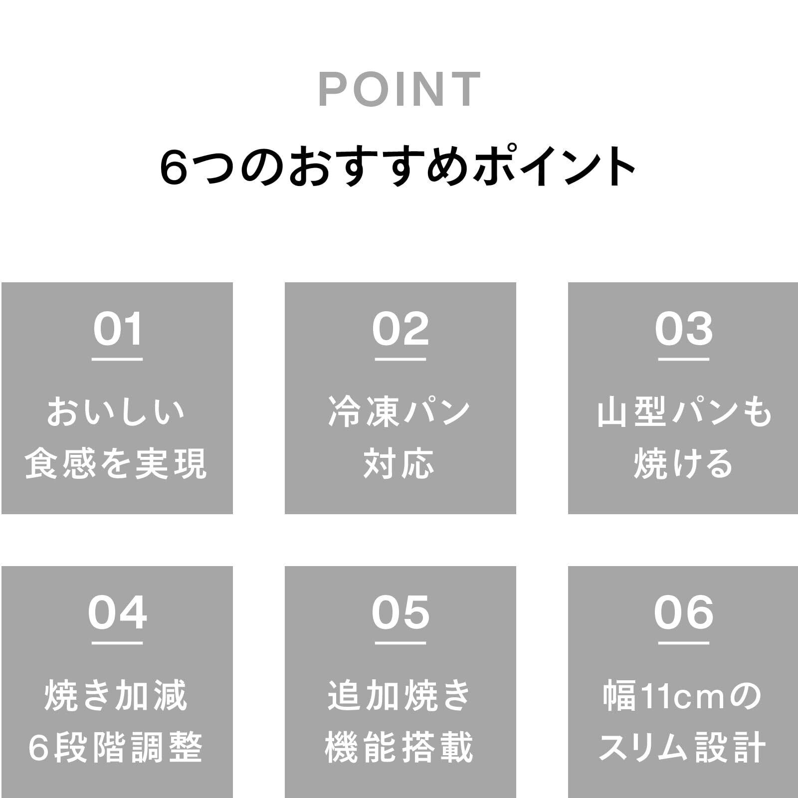 外側は「カリッ」、内側は「ふわっ」と焼けるポップアップトースターならではの食感をお楽しみください。