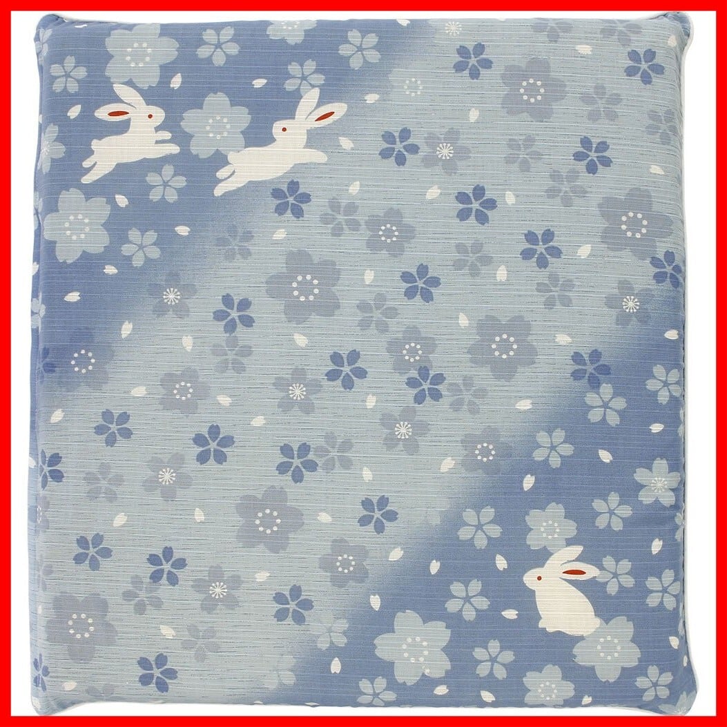 [メリーナイト(Merry Night) 座布団カバー 「桜うさぎ」 ブルー 銘仙判 約55×59cm ファスナー式 綿100% 裏表同じ柄 和室 和テイスト 洗える オールシーズン Z201-72]