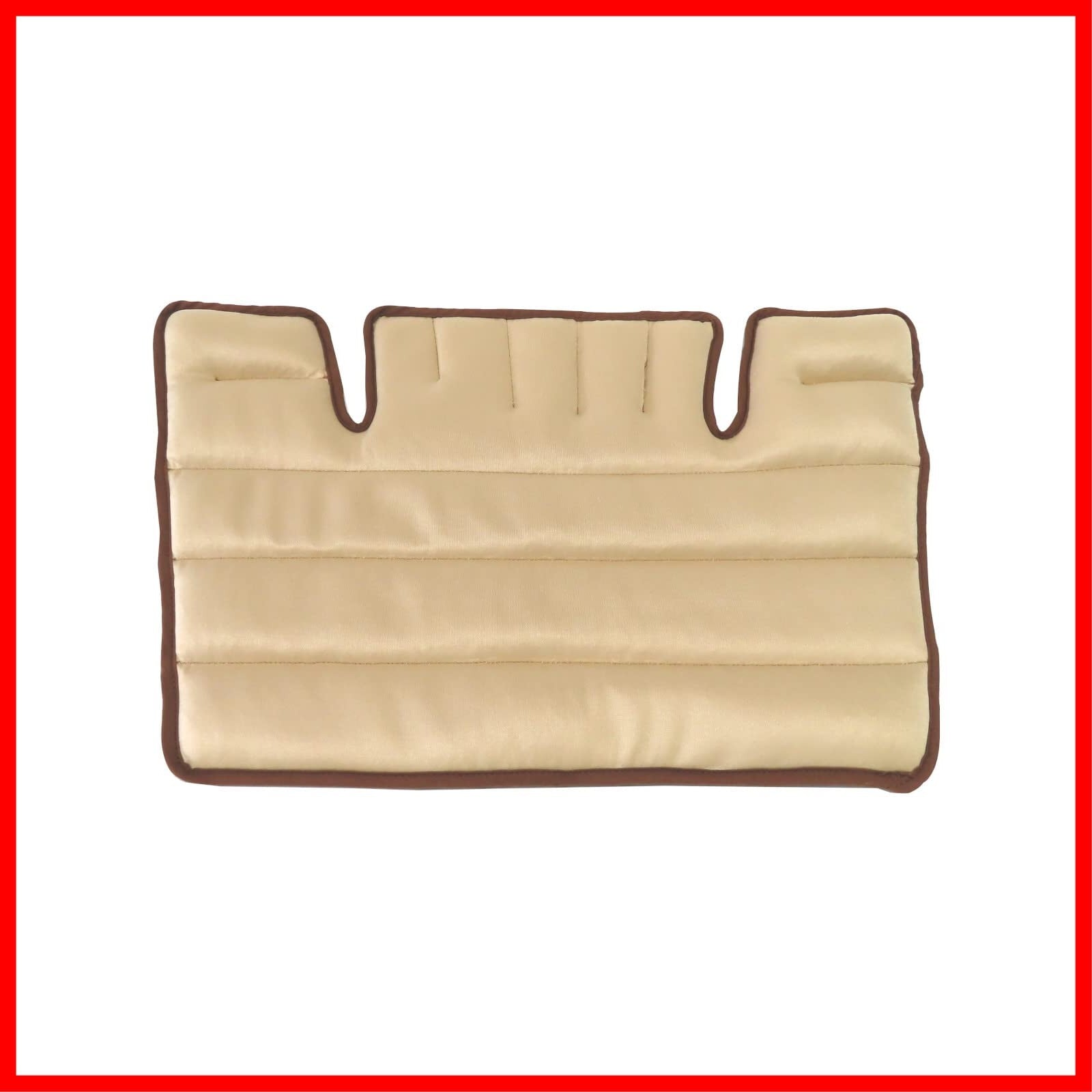 材質:ベージュ面:ナイロン 93.4%、ポリウレタン 6.6%、グレー面:ポリエステル 91.4%、ポリウレタン 8.6%、フチ布:ポリエステル 65.2%、コットン 34.8%、ビーズ:セラミック
