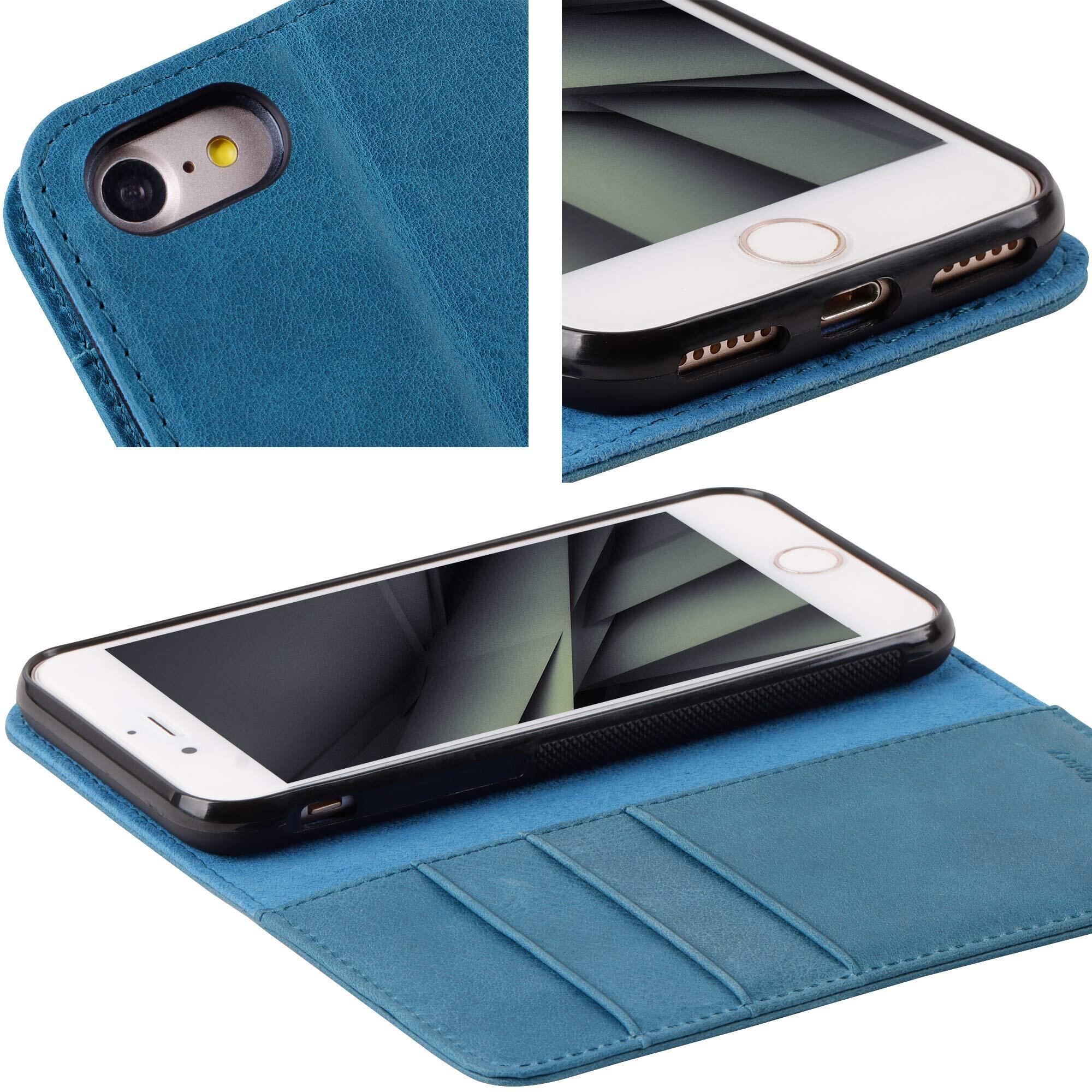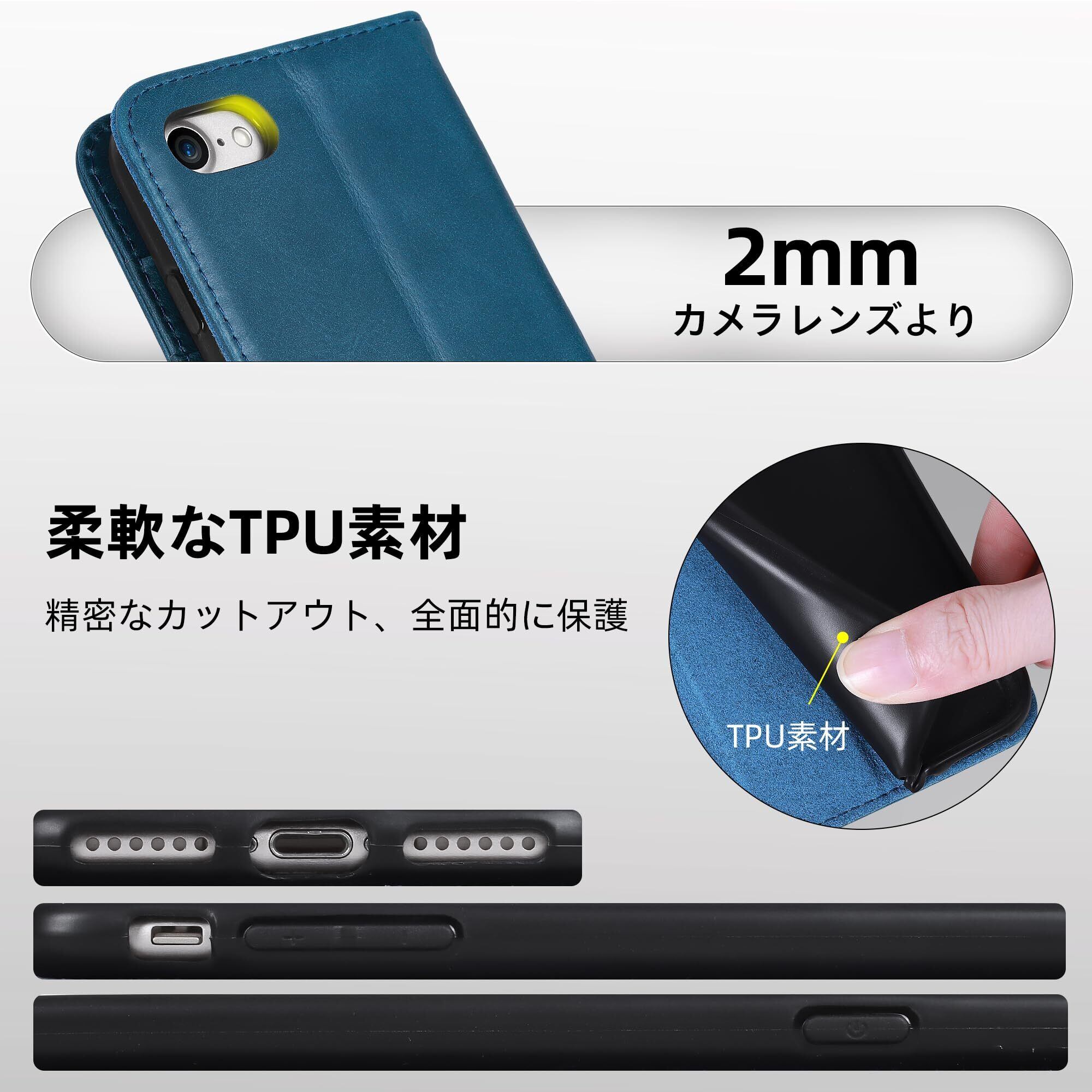 VISOUL iphoneSE 対応ケース 第3世代 iphoneSE第2世代 ケース 手帳型 本革 iphone7ケース 手帳型レザー 対衝撃 スマホケース 携帯カバー マグネット式 横置きスタンド (青)