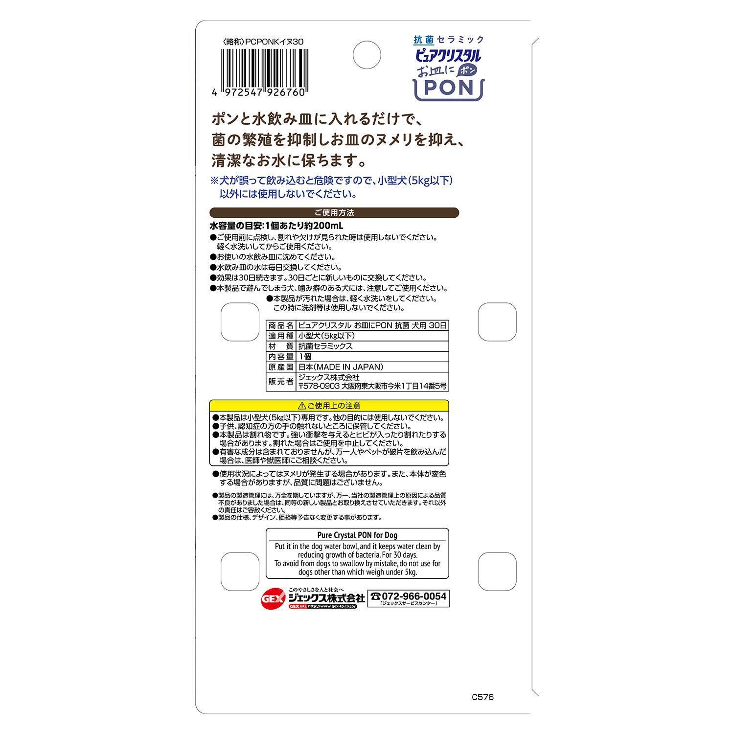 GEX ピュアクリスタル お皿にPON 抗菌 清潔なお水を維持する抗菌セラミック 犬用 1個[約1ヵ月分]