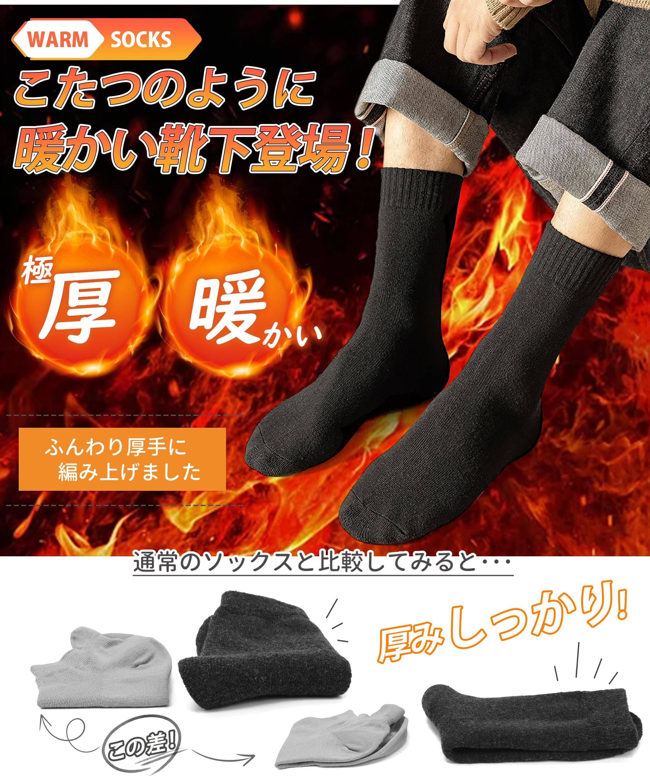 【こたつのように暖かい靴下登場!】サイズ:約25㎝~29㎝、重量:約68g。適用季節は秋、冬、春です。日本人の足型の長さによって改良されており、伝統的な靴下の長さを超えました、ファッションと防寒の二重スタイルを実現されました。寒い冬の日には、一歩一歩に暖かさが必要です。 こたつのように暖かい靴下は、繊維の1本1本に暖かさのパワーを秘めている。 冷たい風が吹いても室内暖房が不足しても暖かさを感じることができます。冷たい足から離れて、冬の暖かさと安らぎをお楽しみいただけます。