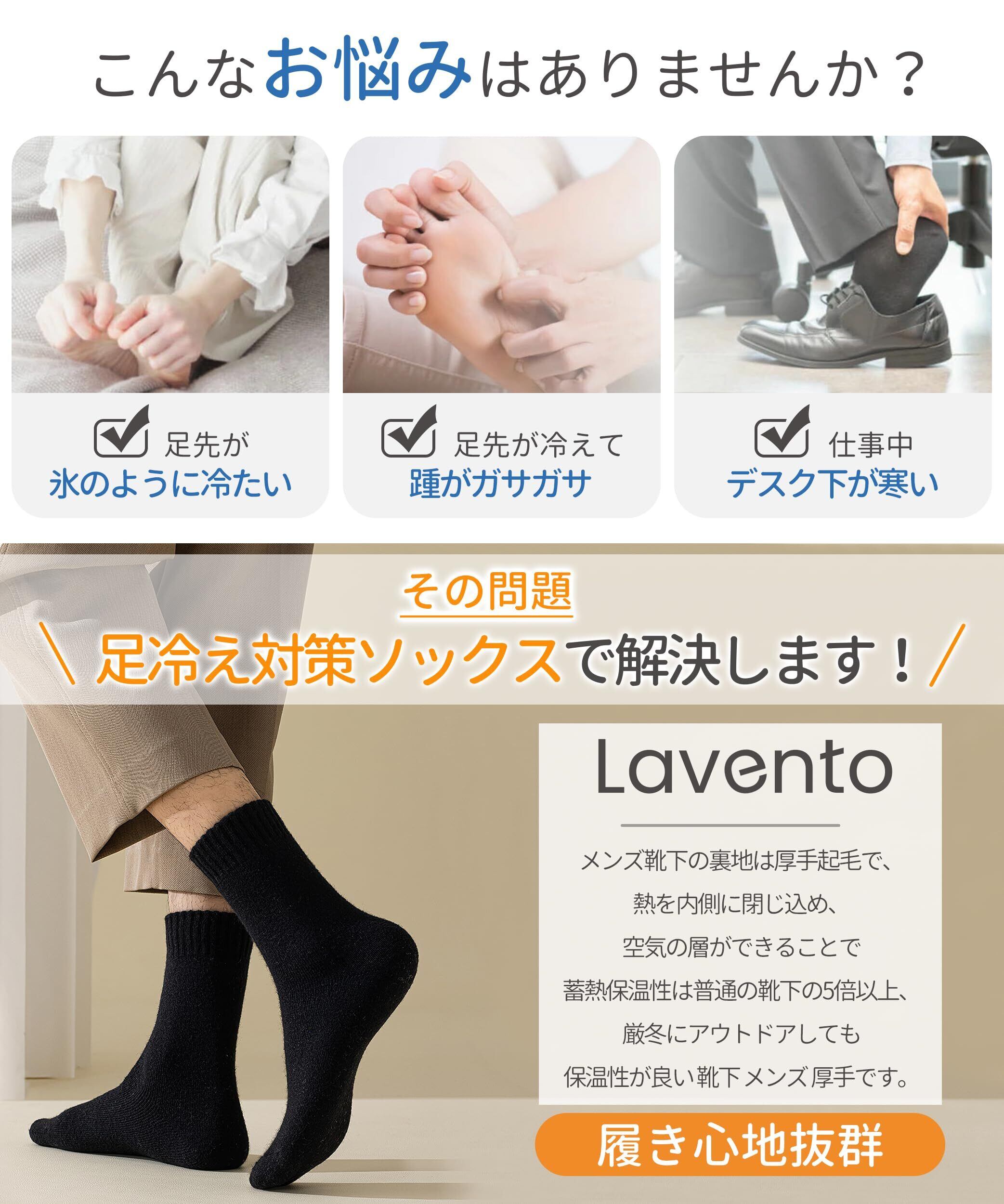 [Lavento] 靴下 メンズ ソックス 冬 厚手 【こたつのように暖かい・保暖厚手裏パイル】 防寒靴下 暖かい靴下 ウールソックス 防寒 保温 消臭 耐久性 伸縮性 室内 アウトドア スキー スポーツ 25-29㎝