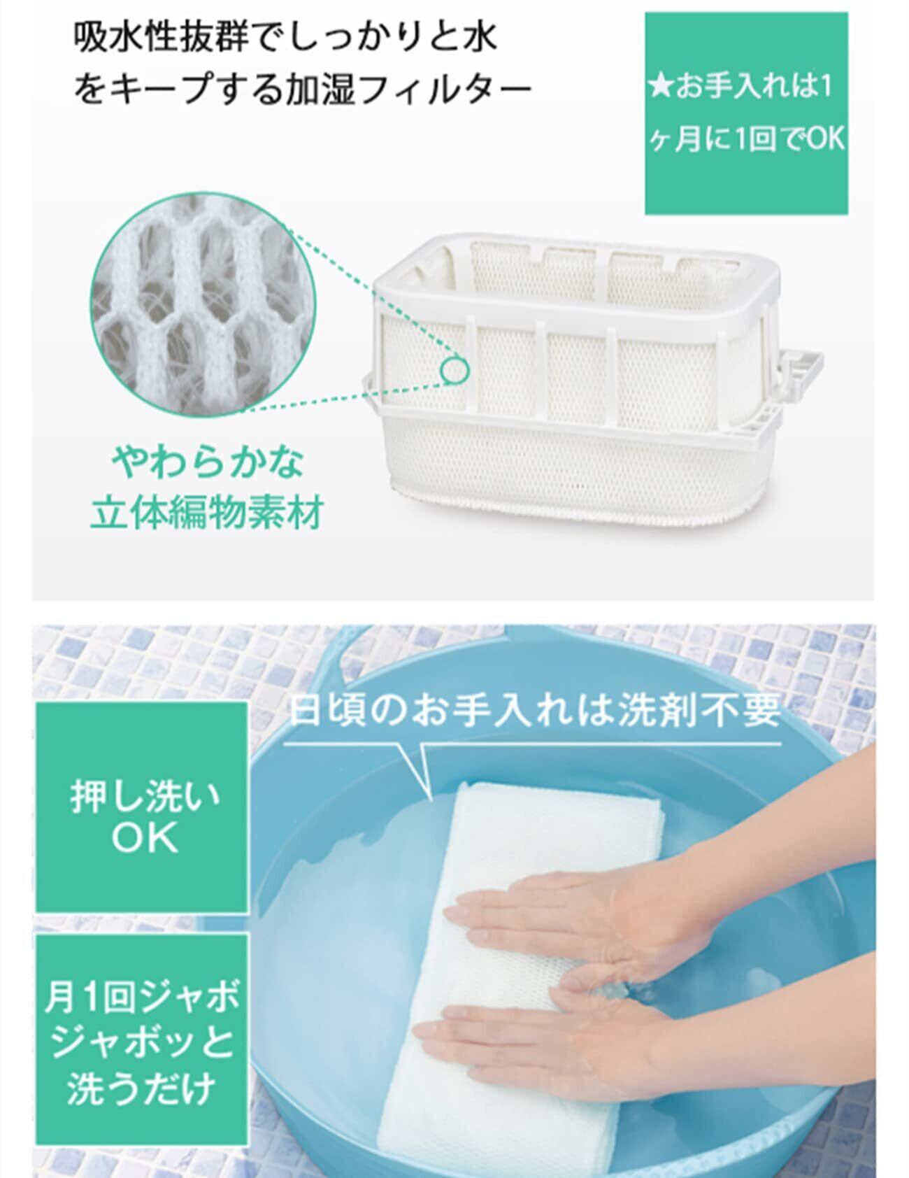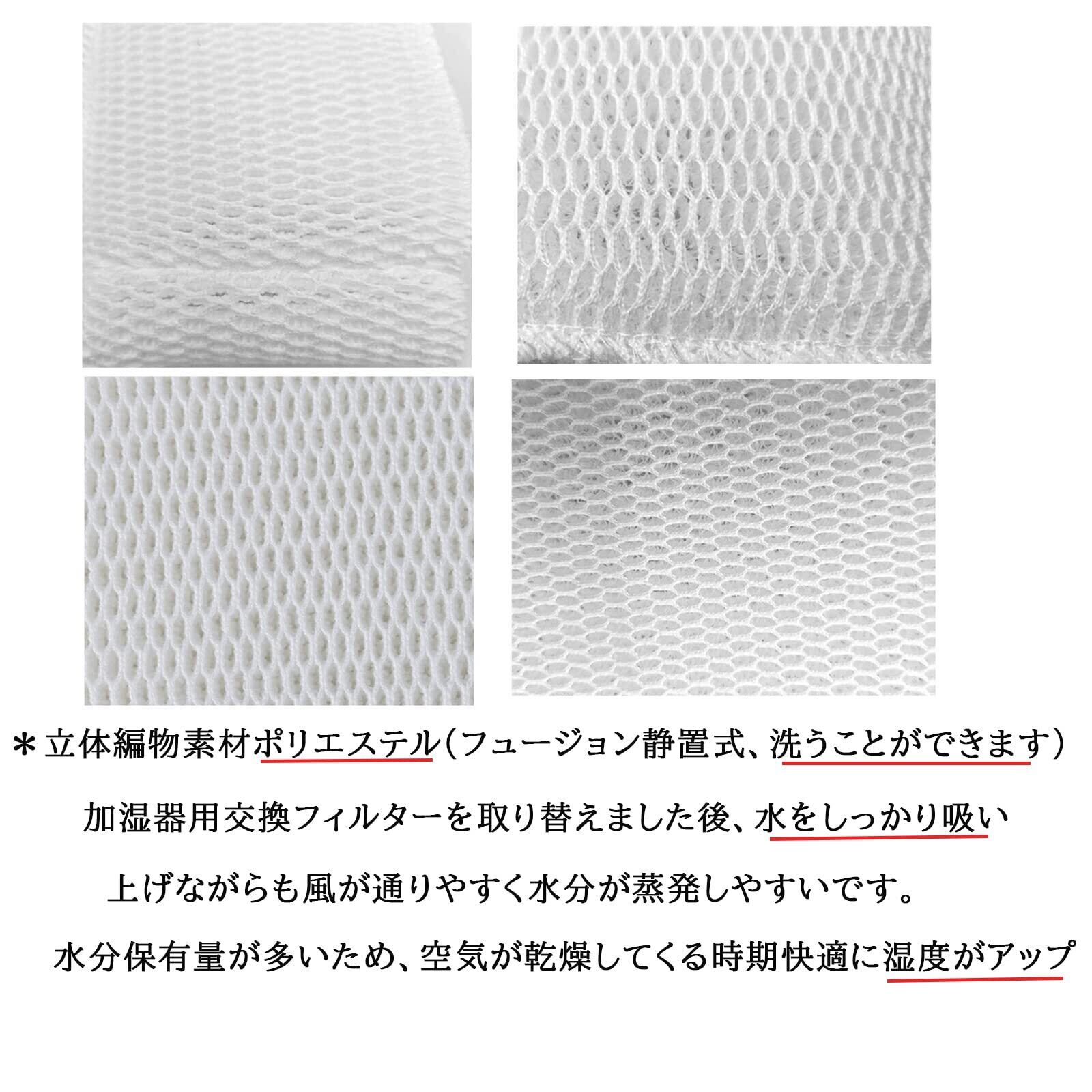 材質と機能:立体編物素材ポリエステル(フュージョン静置式、洗うことができます)。超極細繊維を束ね合わせて編むことで、吸水性能を高めることになります。加湿器用交換フィルターを取り替えました後、水をしっかり吸い上げながらも風が通りやすく水分が蒸発しやすいです。水分保有量が多いため、空気が乾燥してくる時期快適に湿度がアップ