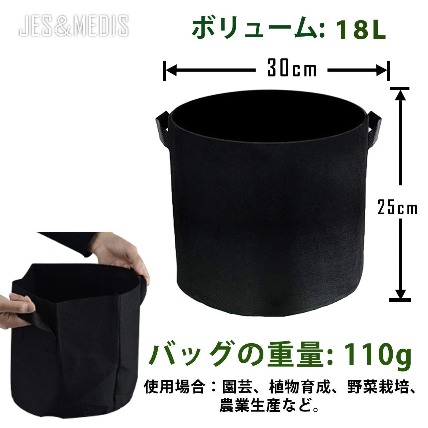 素材:環境に優しい不織布、6pcs、5ガロン(18L)、サイズ:高25 X 直径30cm、重量:約110g *6 カラー:ブラック。
