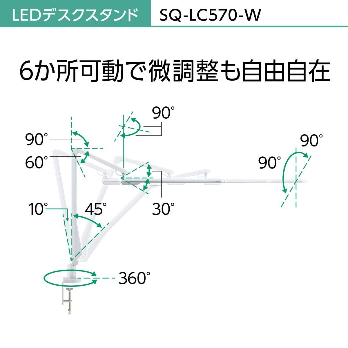 パナソニック LEDデスクライト クランプ型 パソコンくっきり光搭載 非接触タッチレススイッチ スマホ充電USBポート付 6ヶ所可動 器具光束855ルーメン JIS:AA形相当 ホワイト仕上×シルバー SQ-LC570-W