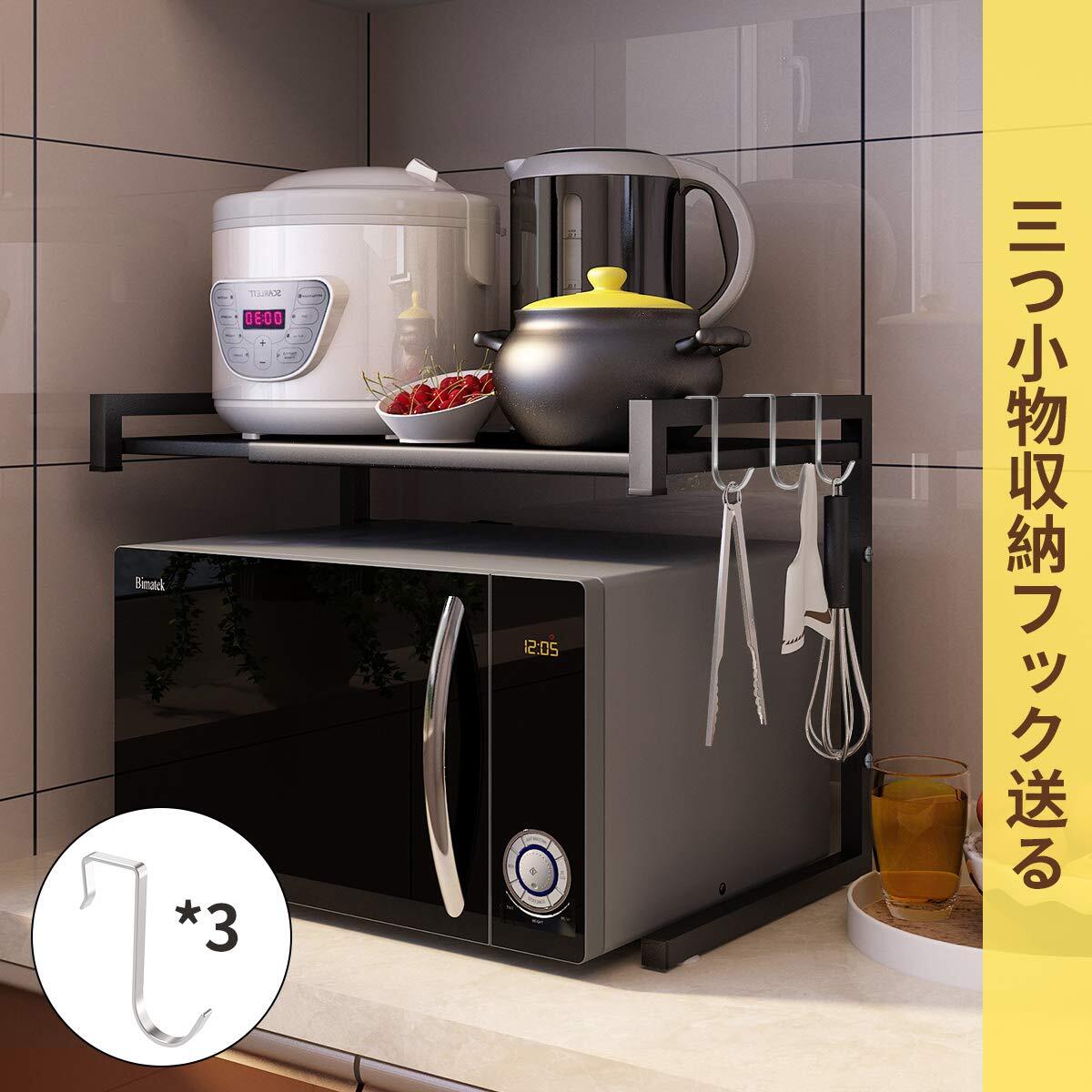 BESONTレンジ上ラック スチールラック 幅(39-54cm)伸縮式 荷重30kg レンジ台 キッチン収納棚 (ブラック S)