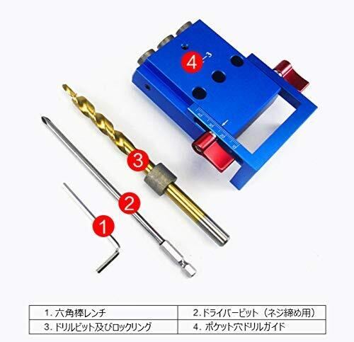 【便利な木工ツール】: 木工ポケットホールジグは、簡単に斜めに口穴をあけることができるガイドです。手軽に扱えるポータブルベース付きで、DIYや木工の作業がスムーズに進行します!