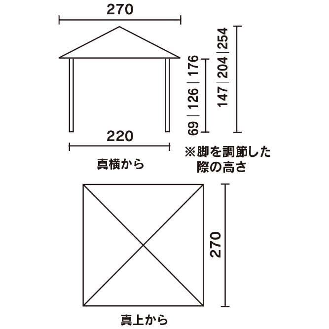 【サイズ】使用時:シェード/約270×270×254(h)cm、フレーム/約220×220cm 収納時:約19×19×90cm