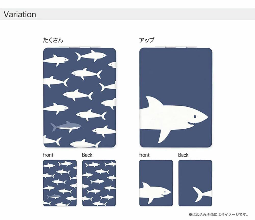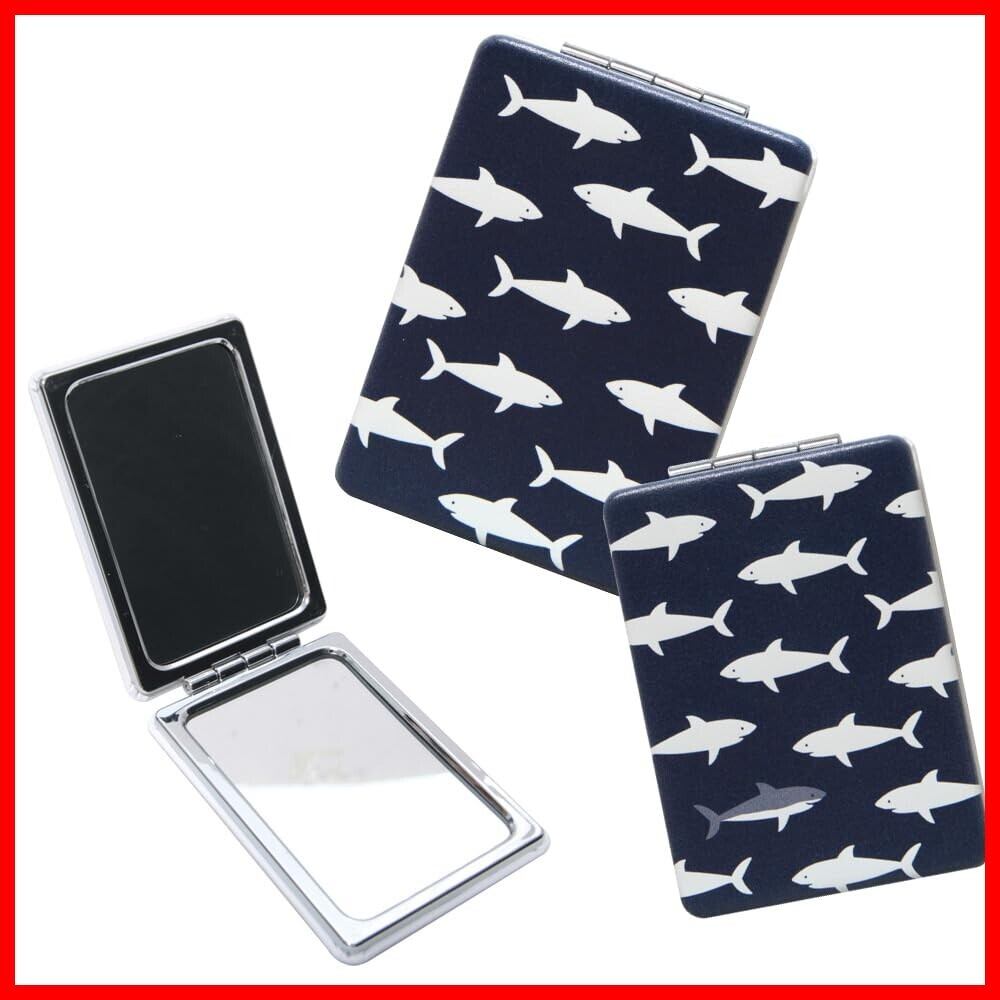 [グランサンク] コンパクトミラー 可愛い キャラクター おしゃれ 軽量 PU素材 ハンドミラー コンパクト 鏡 シンプル コンパクトミラー サメ【たくさん】