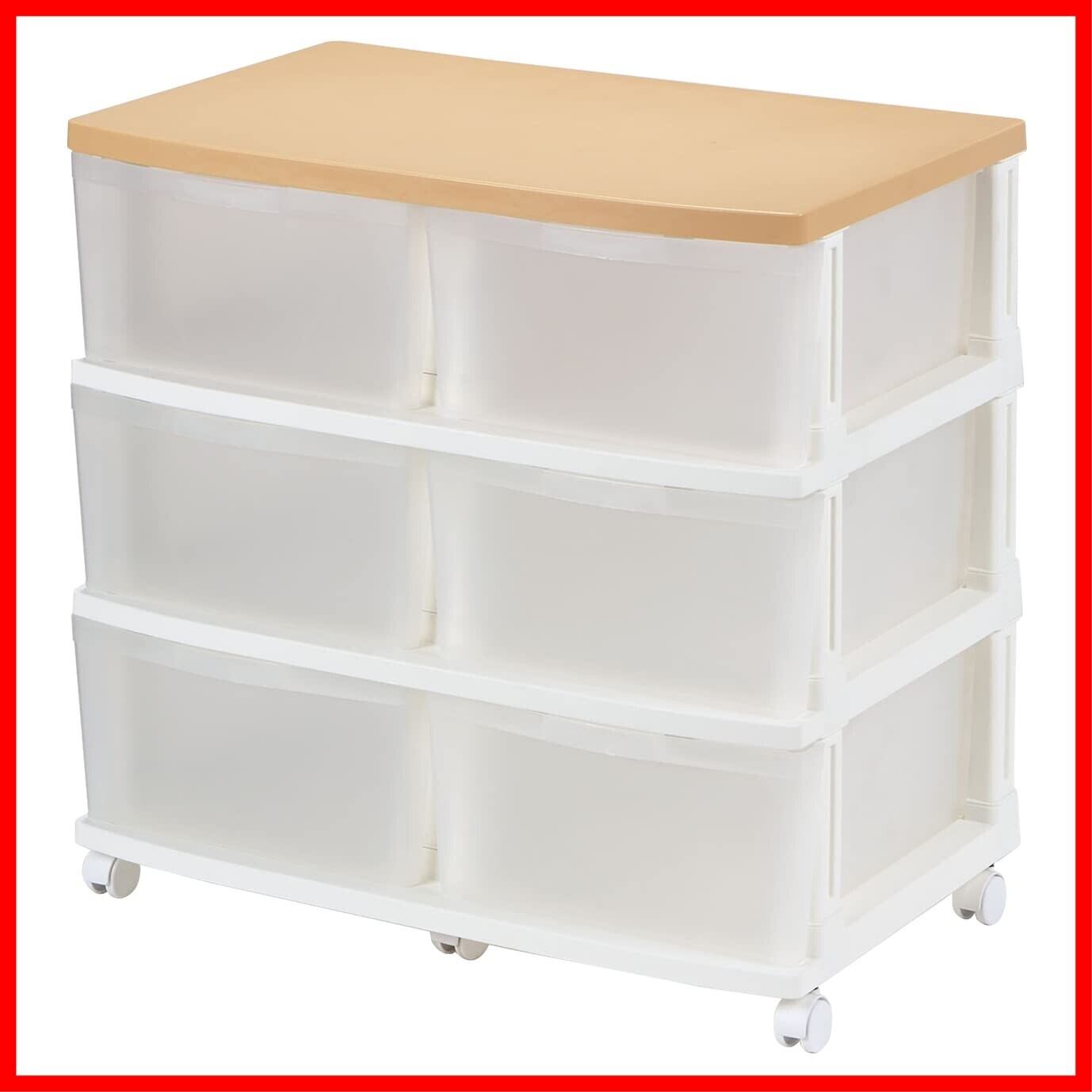 フルフラット強化天板使用で上に物を置くのに便利!補強を施し更に2重構造にしたことにより、プラスチックなのに約10kgの重さにも耐える天板を採用した便利な6引出しストッカー!
