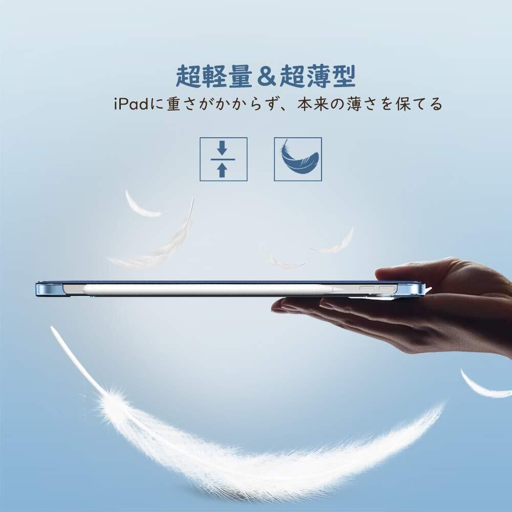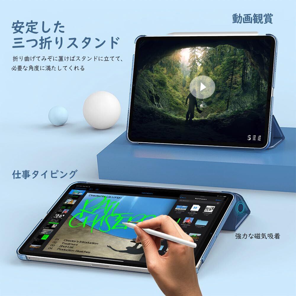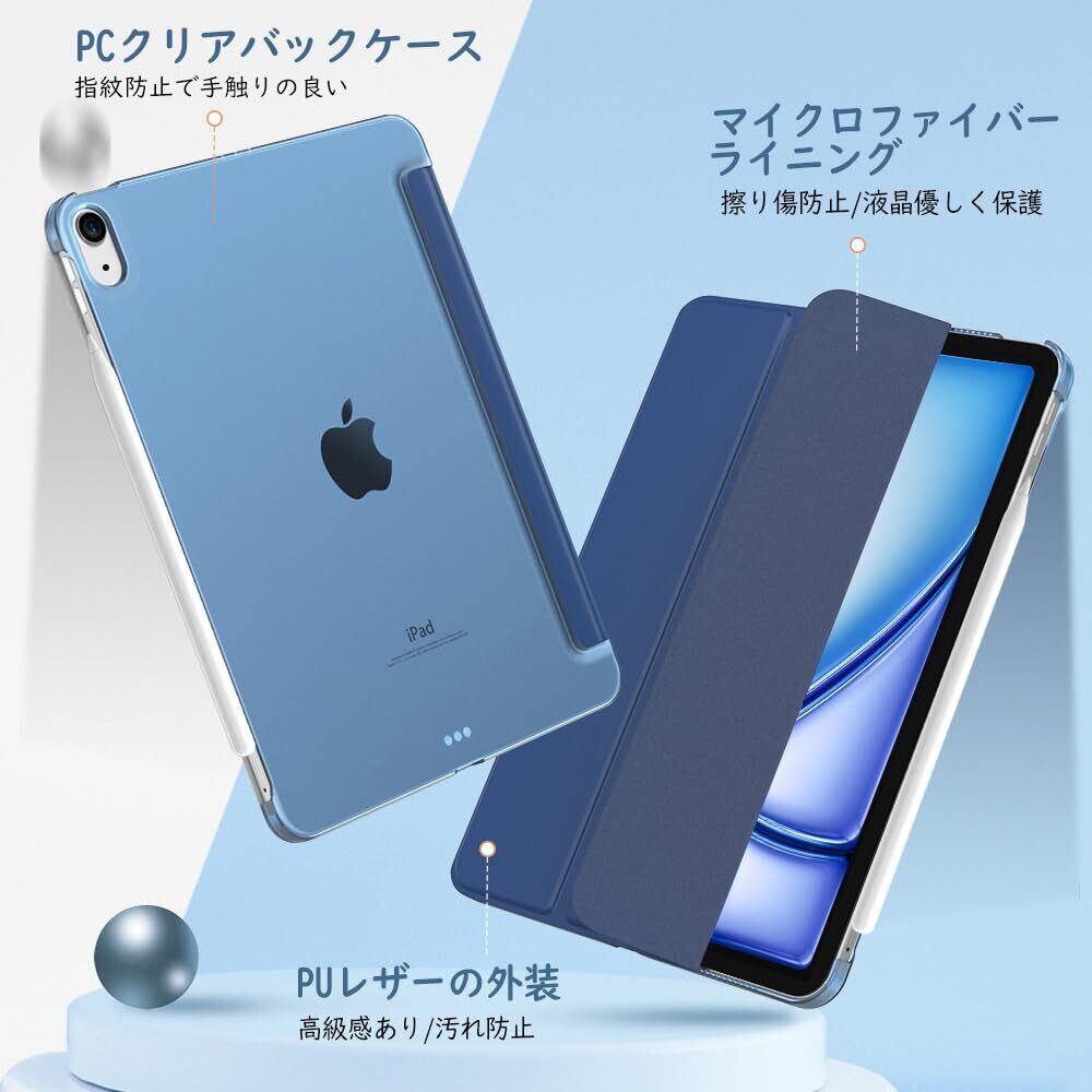TiMOVO iPad Air 11インチ ケース M3/M2 第7/6世代 (2025/2024) iPad air 第5/4世代 ケース 10.9インチ iPadAir7/6/5/4 カバー 11インチ/10.9インチ PencilPro/第2世代ワイヤレス充電対応 PUレーザー 三つ折り オートスリープ機能 落下防止 手帳型 半透明 ネイビーブルー