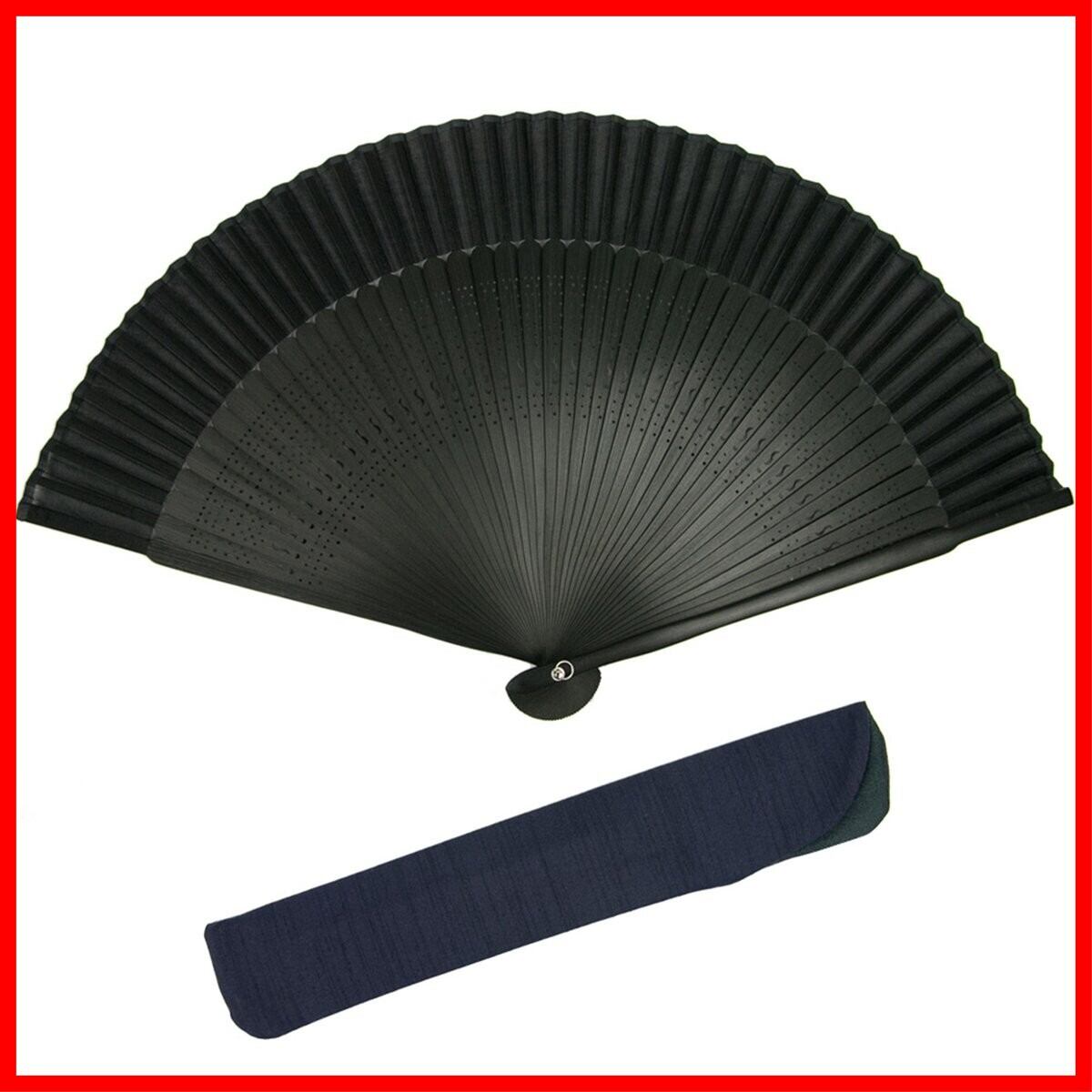 [KYOETSU キョウエツ 扇子 正絹 無地 黒骨 2点セット(扇子、扇子袋) メンズ]