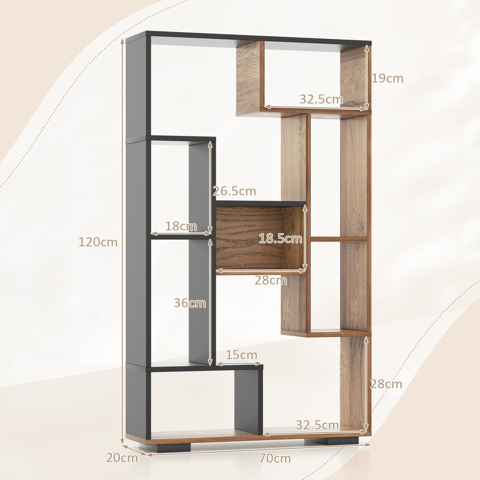 Giantex 本棚 コミックラック 幅70x奥行20x高さ120cm 耐荷重10kg/段 オープンシェルフ オープンラック 収納ラック ディスプレイラック 収納棚 飾り棚 植物ラック 文庫本収納ラック 絵本棚 雑誌 マンガ棚 リビングルーム ベッドルーム 書斎 転倒防止装置付き おしゃれ (ブラック+木目調)