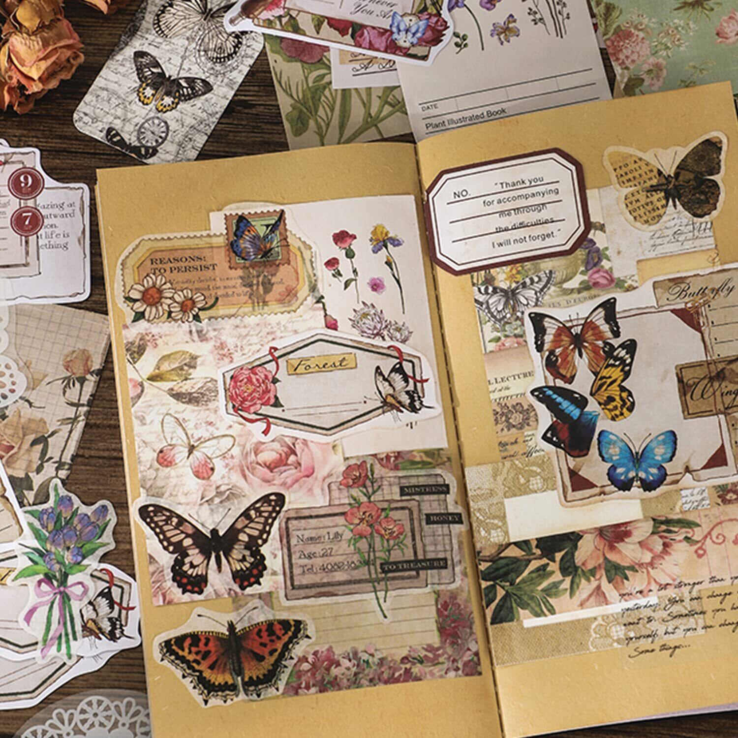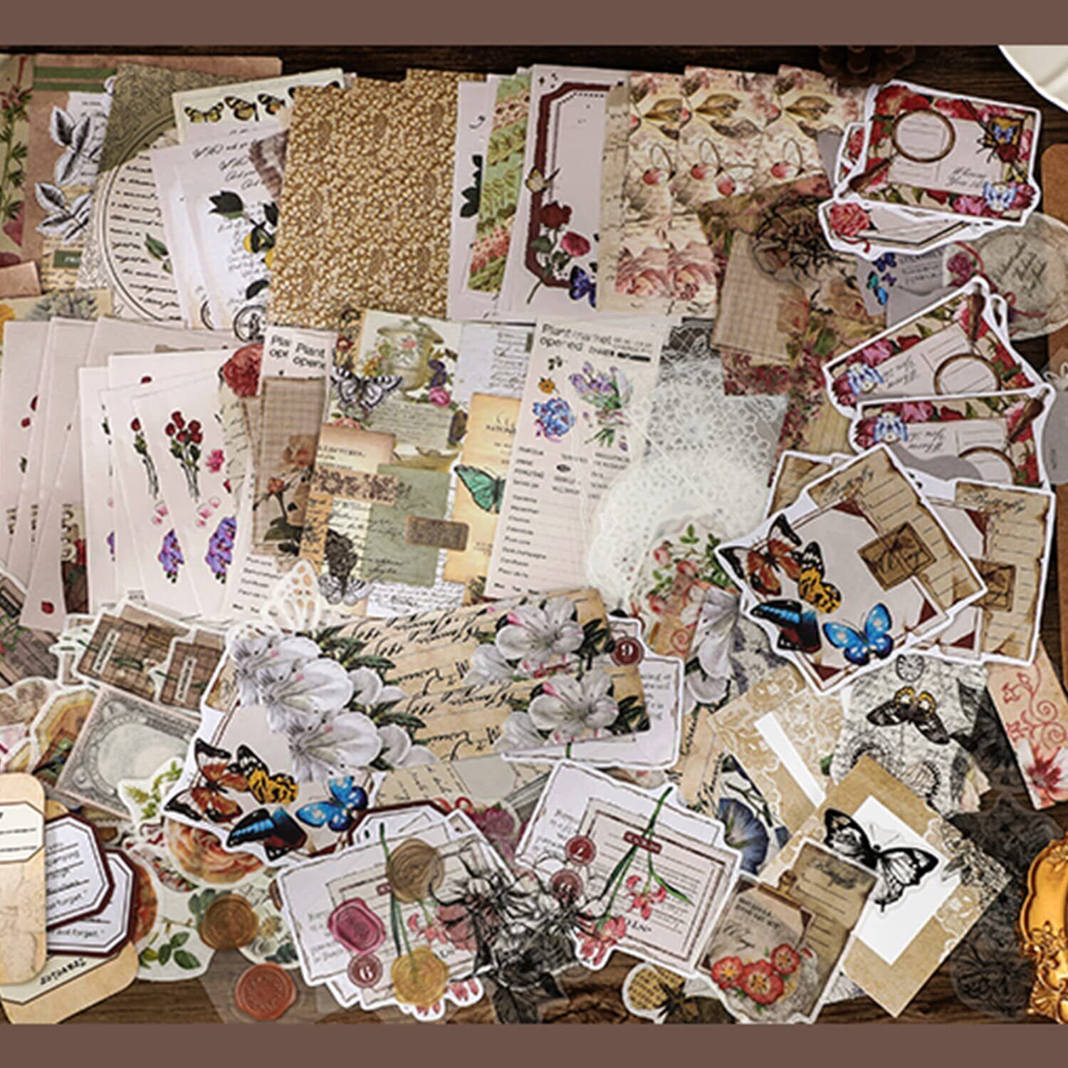260枚 大容量 コラージュ 素材 シール ステッカー 手帳素材パック レトロ アンティーク フレークシールステッカー デザインペーパー 素材紙 和紙 メモ用紙 カード 紙モノ ノート スケジュール カレンダー (森林)