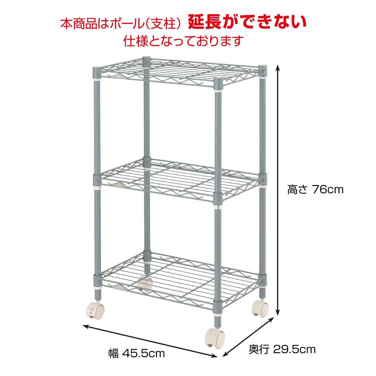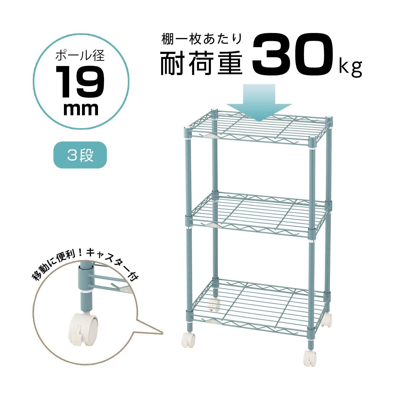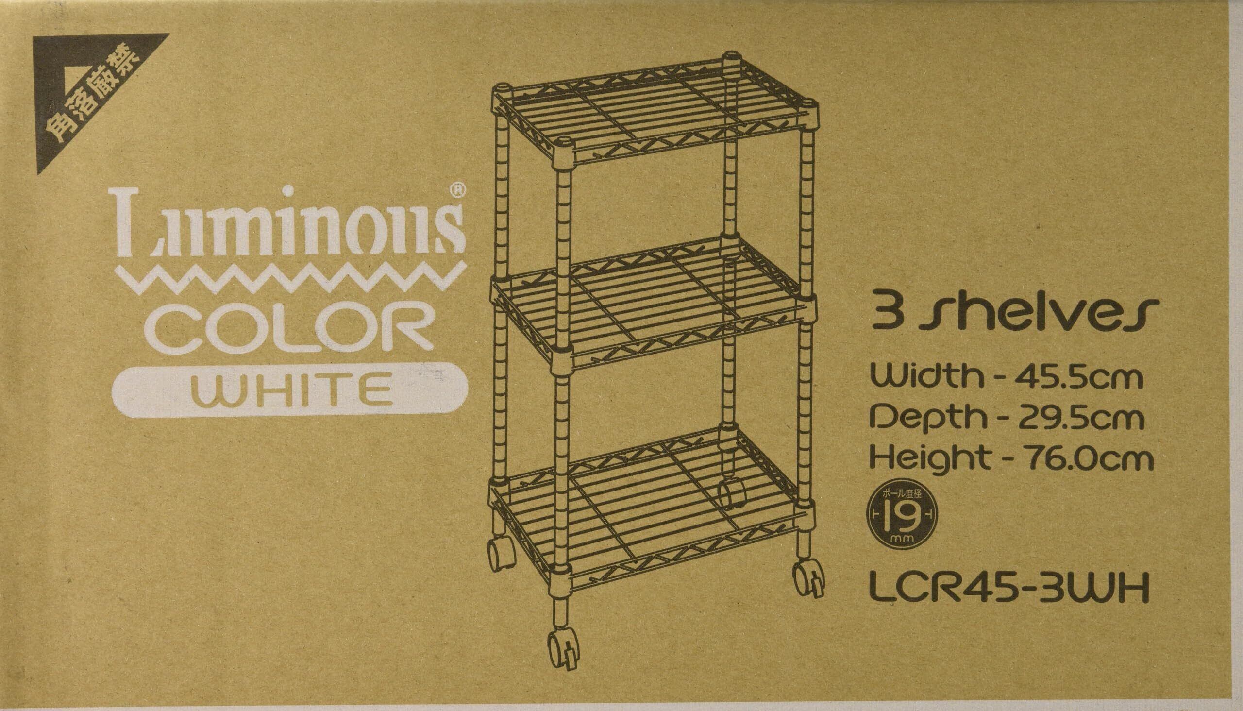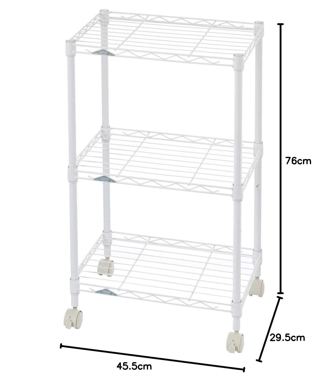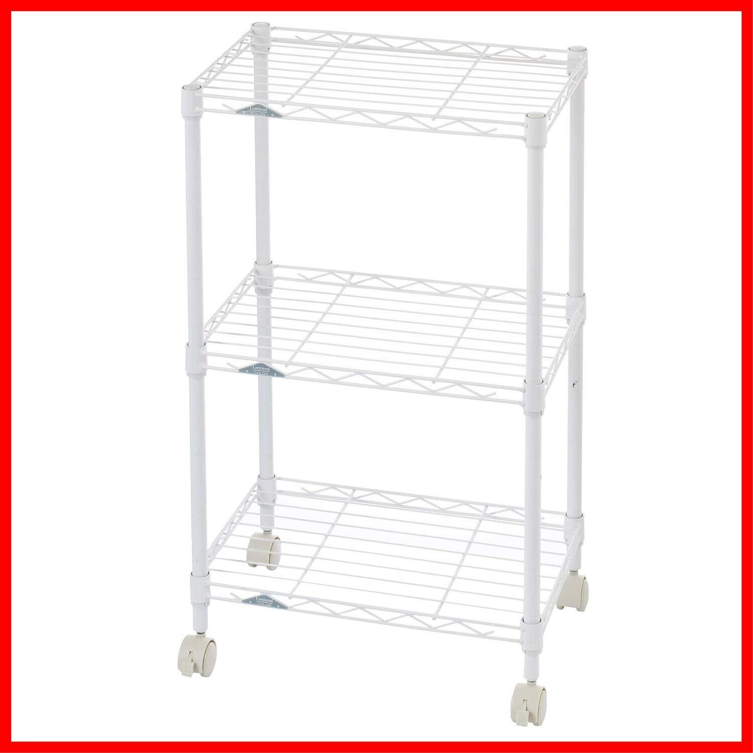 ドウシシャ ルミナス カラーラック ホワイト 3段 幅45 スリム オシャレでかわいい スチールラック 棚 収納 全体耐荷重90kg キャスター付き ポール径19mm 幅45.5×奥行29.5×高さ76 キッチン ランドリー 押し入れ LCR45-3WH | hananoki