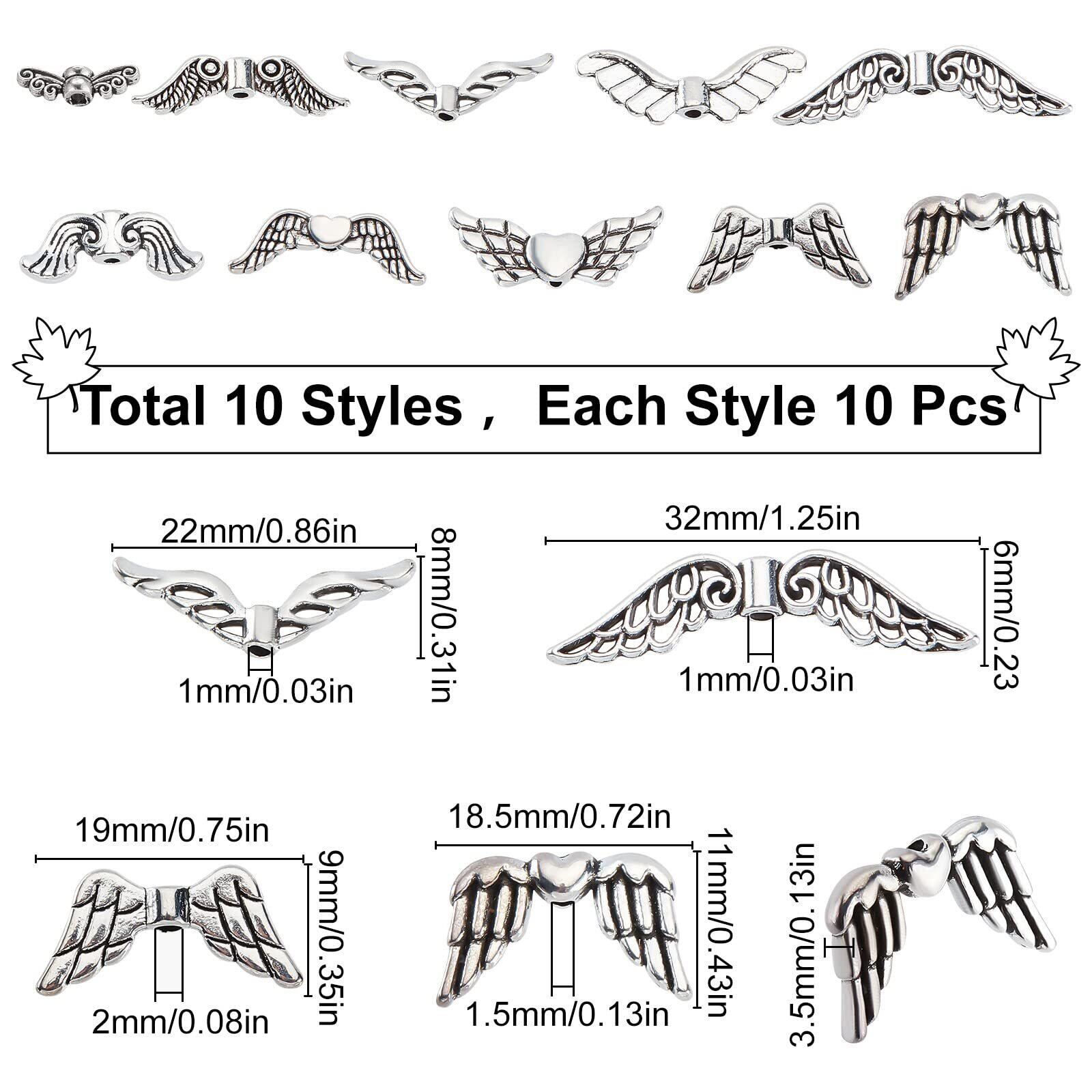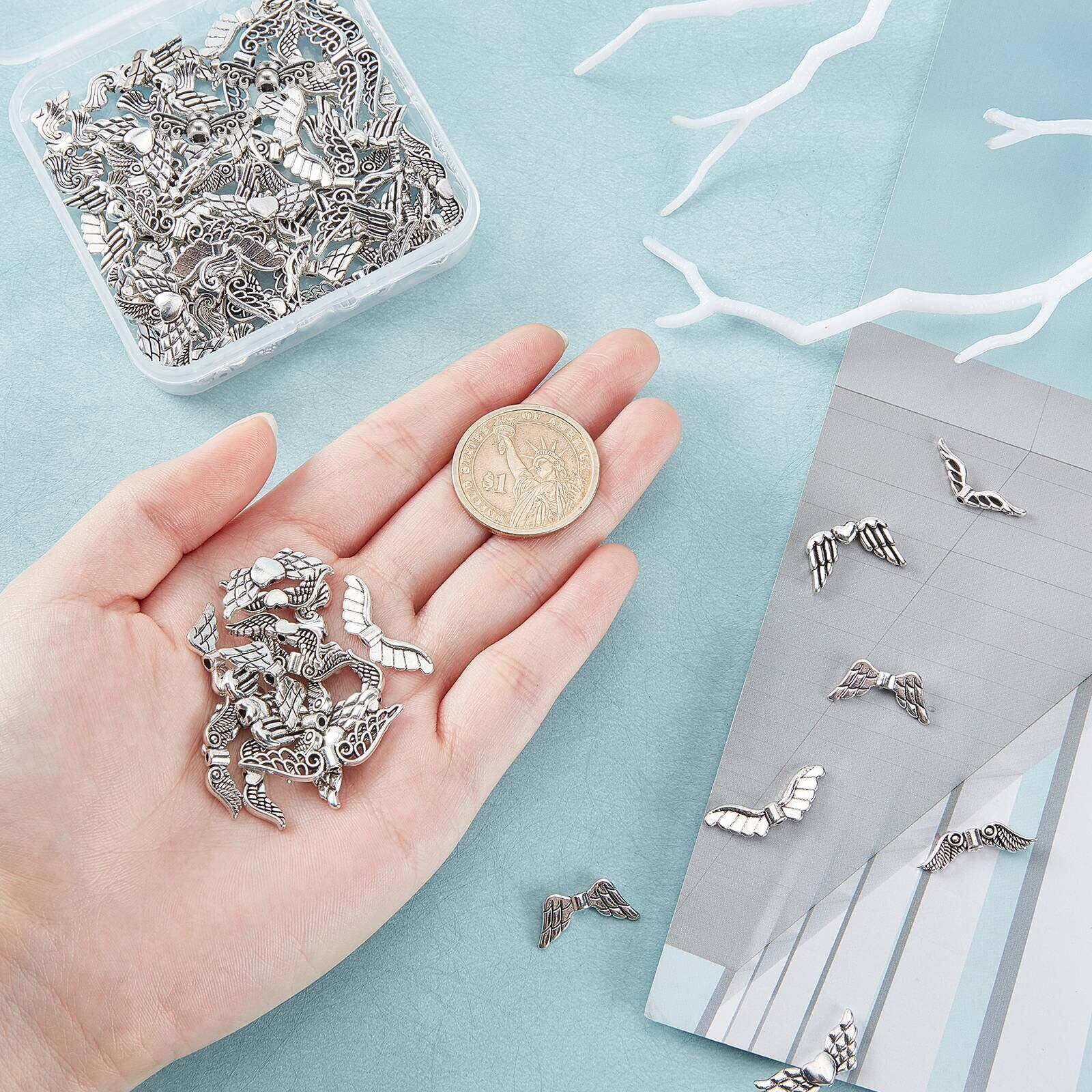 SUNNYCLUE 100個10種 合金 ビーズ チャーム 羽 スペーサー ビーズ 天使の羽 スペーサービーズ 翼柄 デコ パーツ 翼 チャーム チベット 翼の形 ビーズ チベット 合金 チャーム ルーススペーサービーズ アンティーク シルバー 銀古美 ジュエリー用 アクセサリーパーツ 手作り素材 材料 シルバー デコ パーツ エンジェルウイング アクセサリーパーツ ウィング 合金 DIYクラフト作り ネックレス ブレスレット イヤリング クラフト ジュエリー作成用 | hananoki