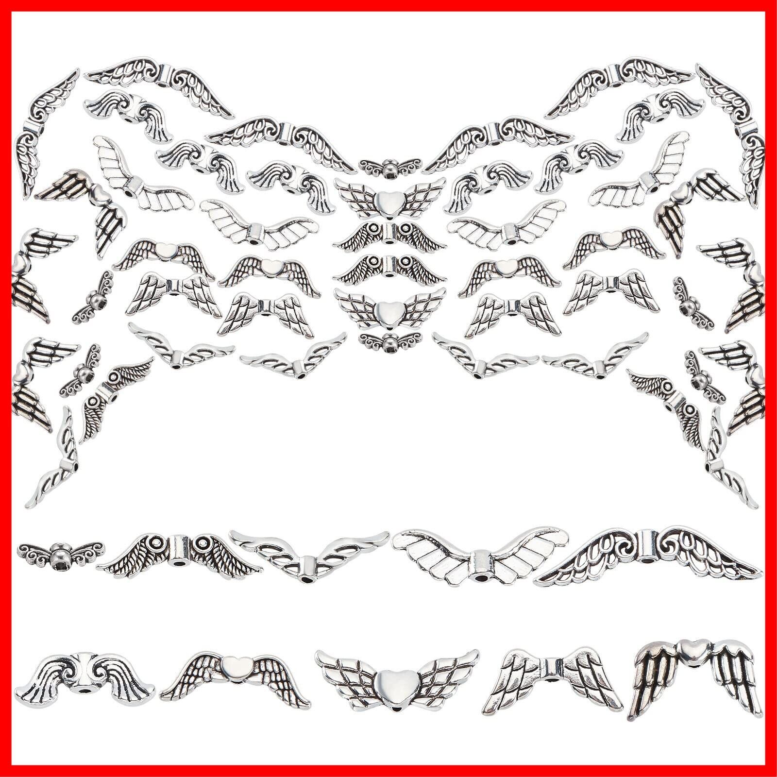[SUNNYCLUE 100個10種 合金 ビーズ チャーム 羽 スペーサー ビーズ 天使の羽 スペーサービーズ 翼柄 デコ パーツ]