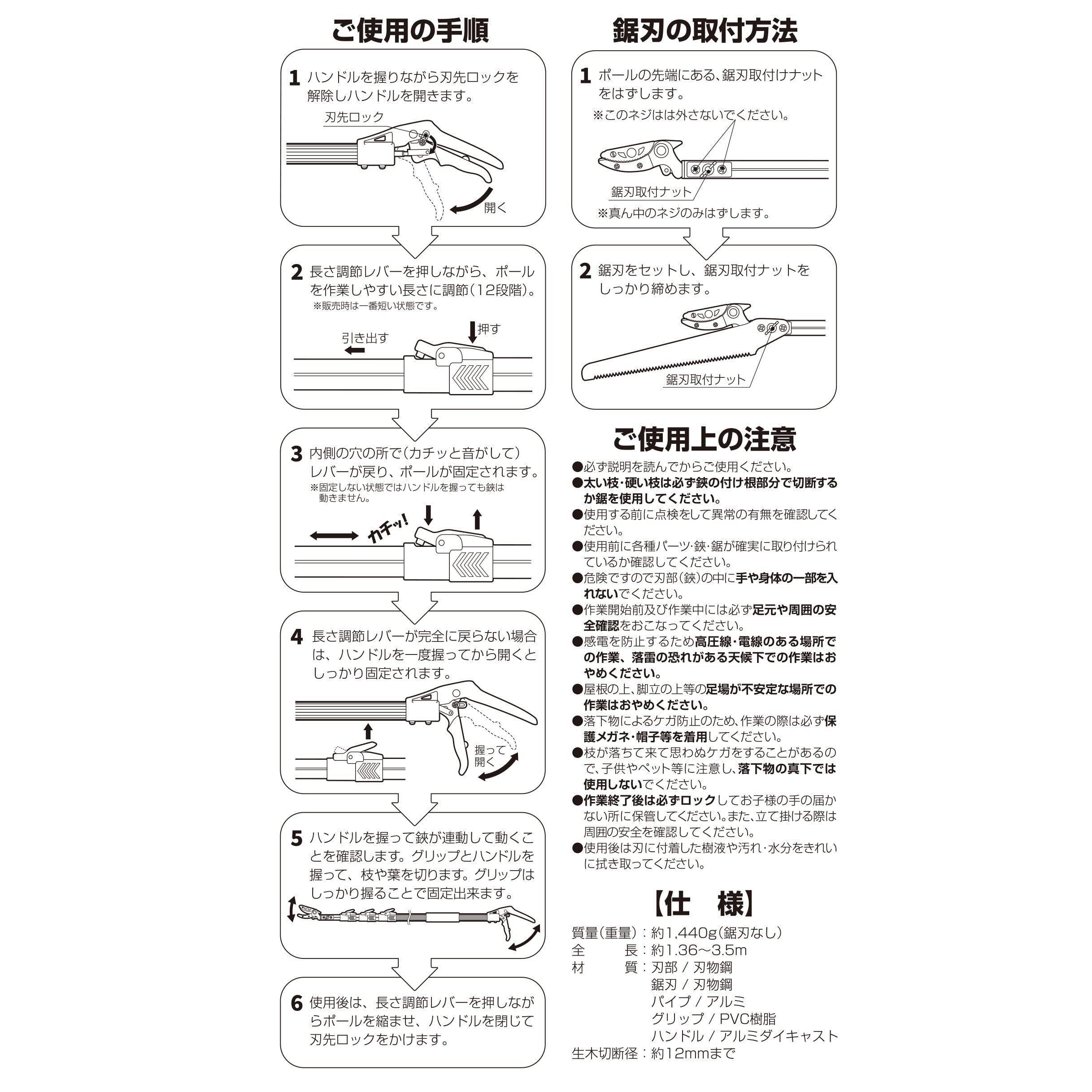 ◎収納に便利な伸縮式高枝切鋏 3.5m 4段式伸縮タイプ