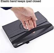 ➤【ゴムバンド付き】 フロントカバーの裏側に弾性バンドがあり、携帯性良いし、 混んでいる電車中に使う時などに、ipadの落下防止にも役立ちます。