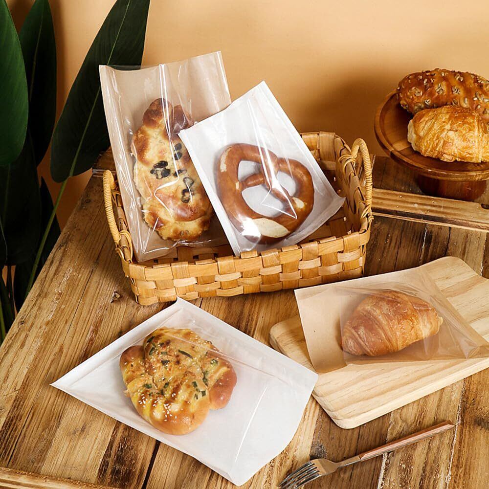 パン袋 焼きたてのパン袋 サンドイッチバッグ ベーキング包装 クラフト紙 セミフィルム紙 ヒートシール可能 電子レンジ対応可 ラッピングシール付き 白 100枚入り ((18×19cm))