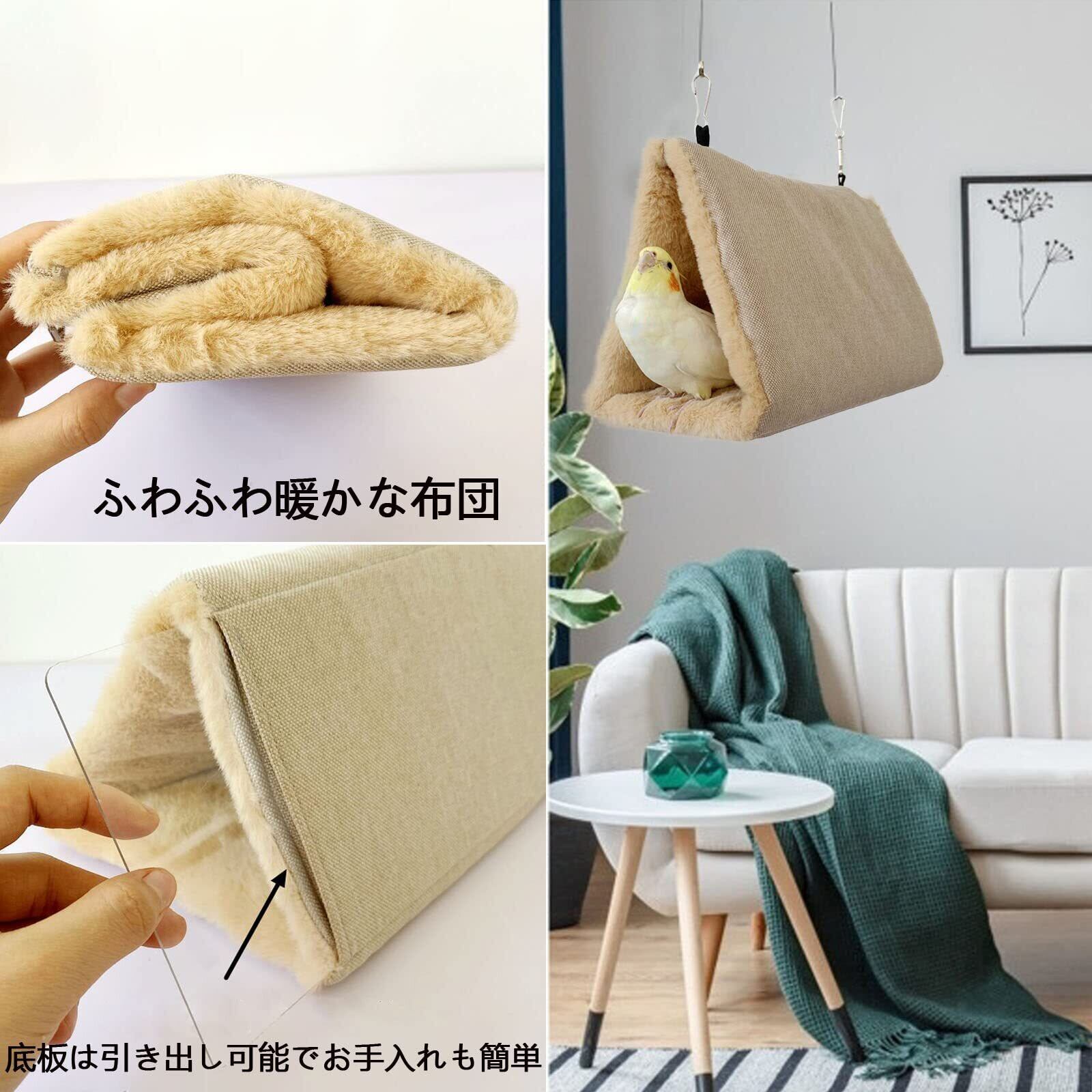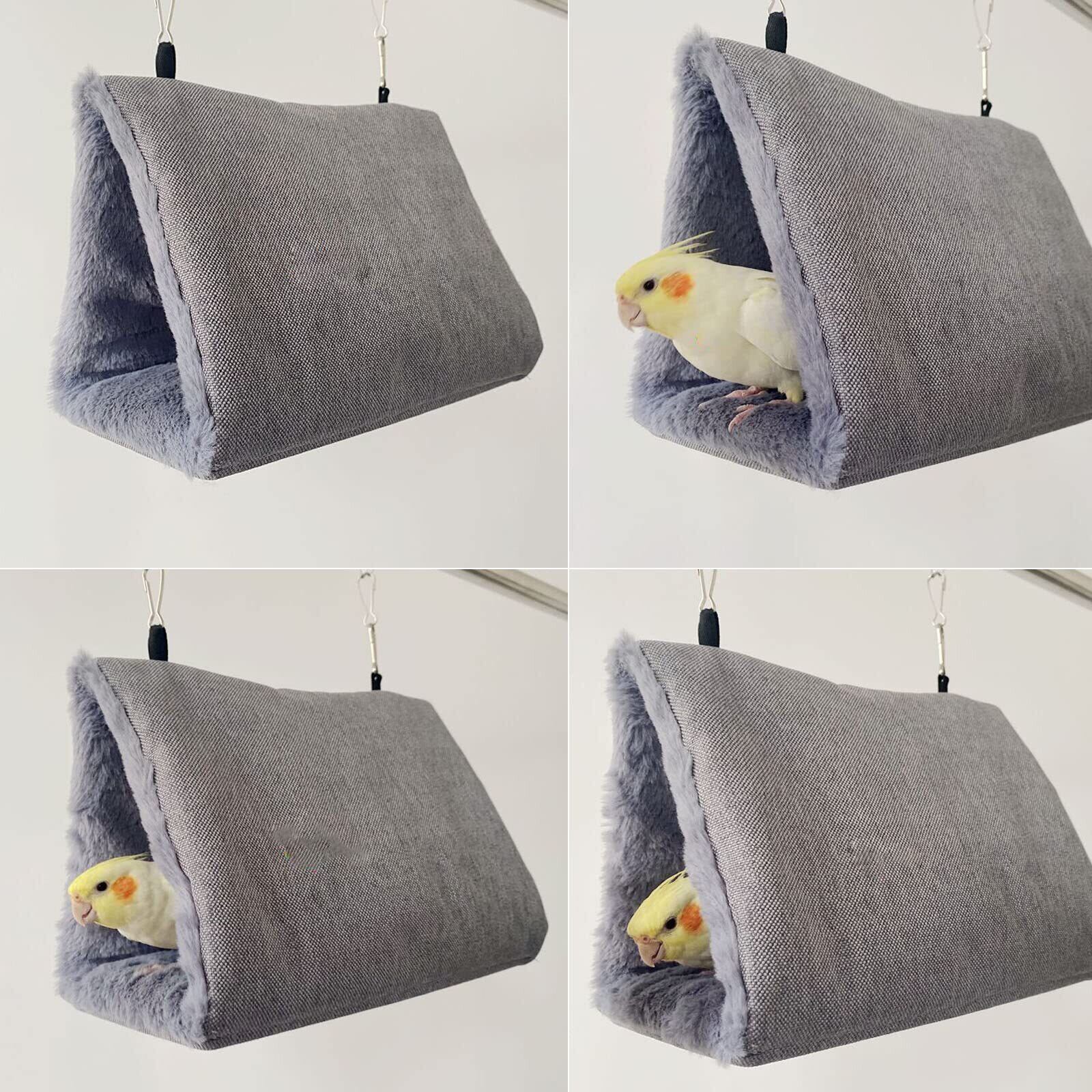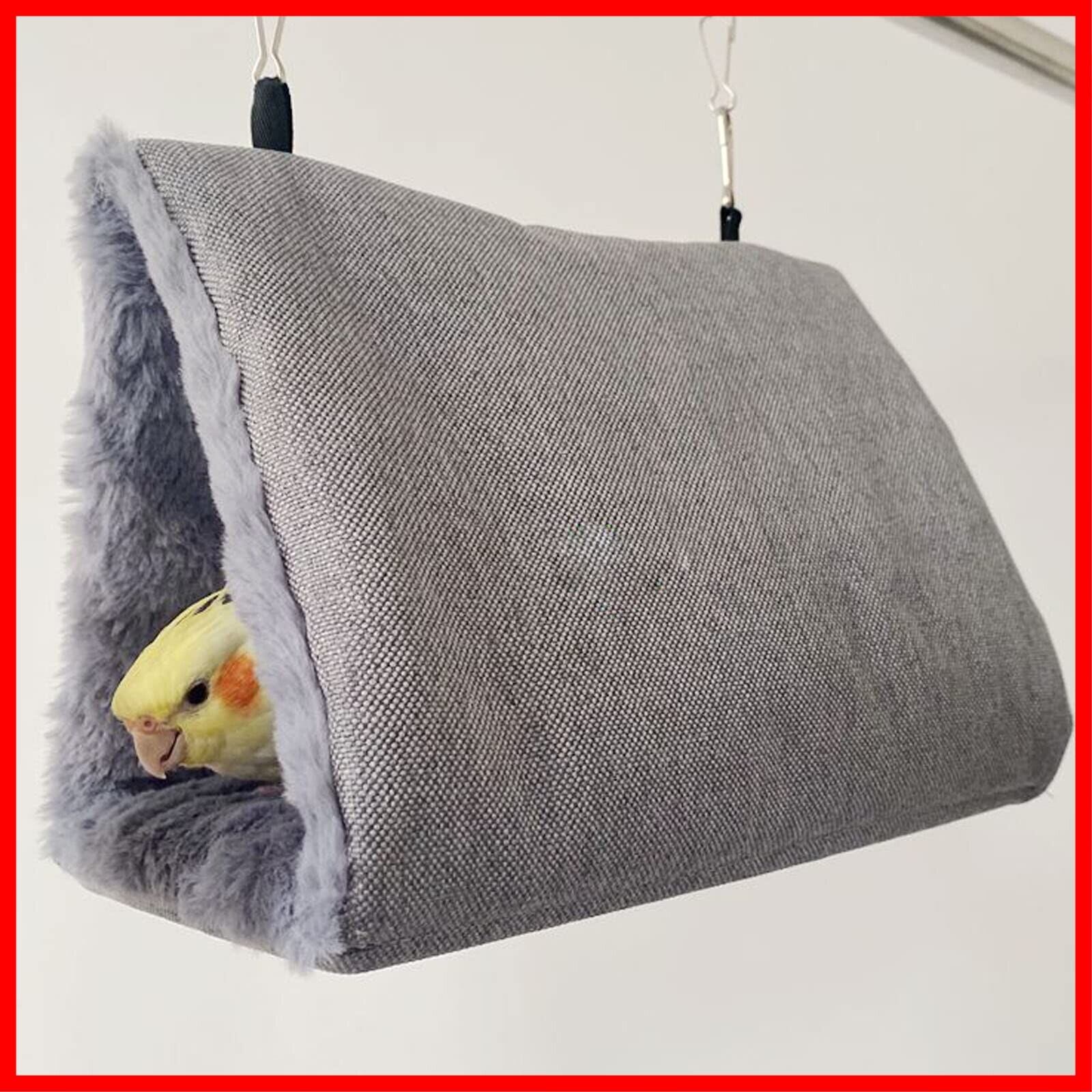 鳥たちの寝床 三角ハウス インコ おもちゃ 掛ける鳥の巣 ハンモック ペット 用 テント いんこおもちゃ かわいい 寝袋 無地 厚みふわふわ 暖かい Cave Bed 遊び場 保温 寒さ対策 鳥の おもちゃ 鳥用品 文鳥 鸚鵡 小動物 ハウス 冬 フックとチェーン付き 両側開放型-L グレー | hananoki