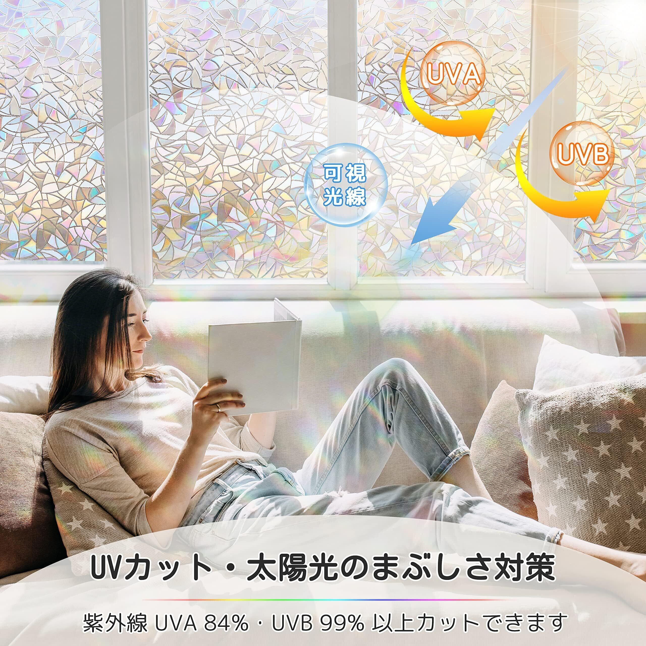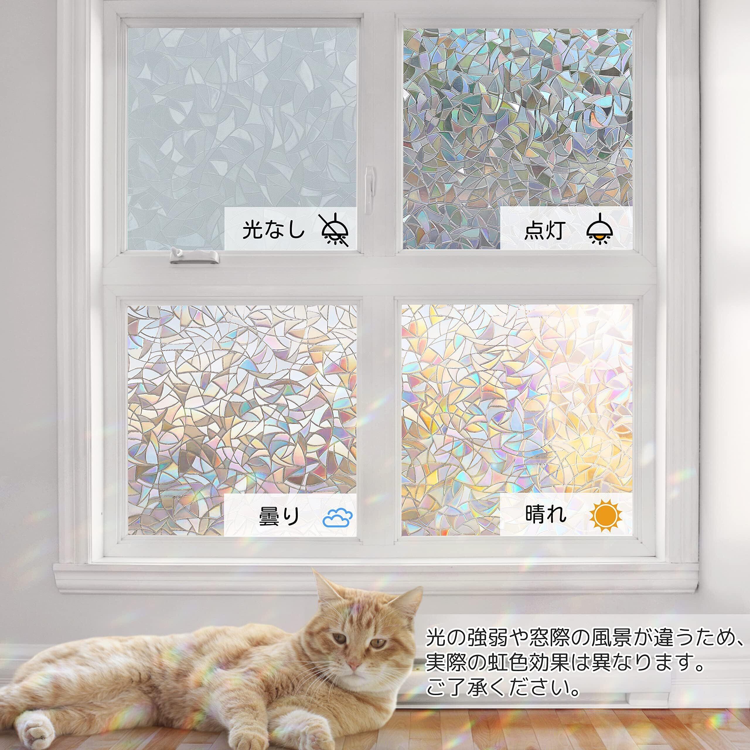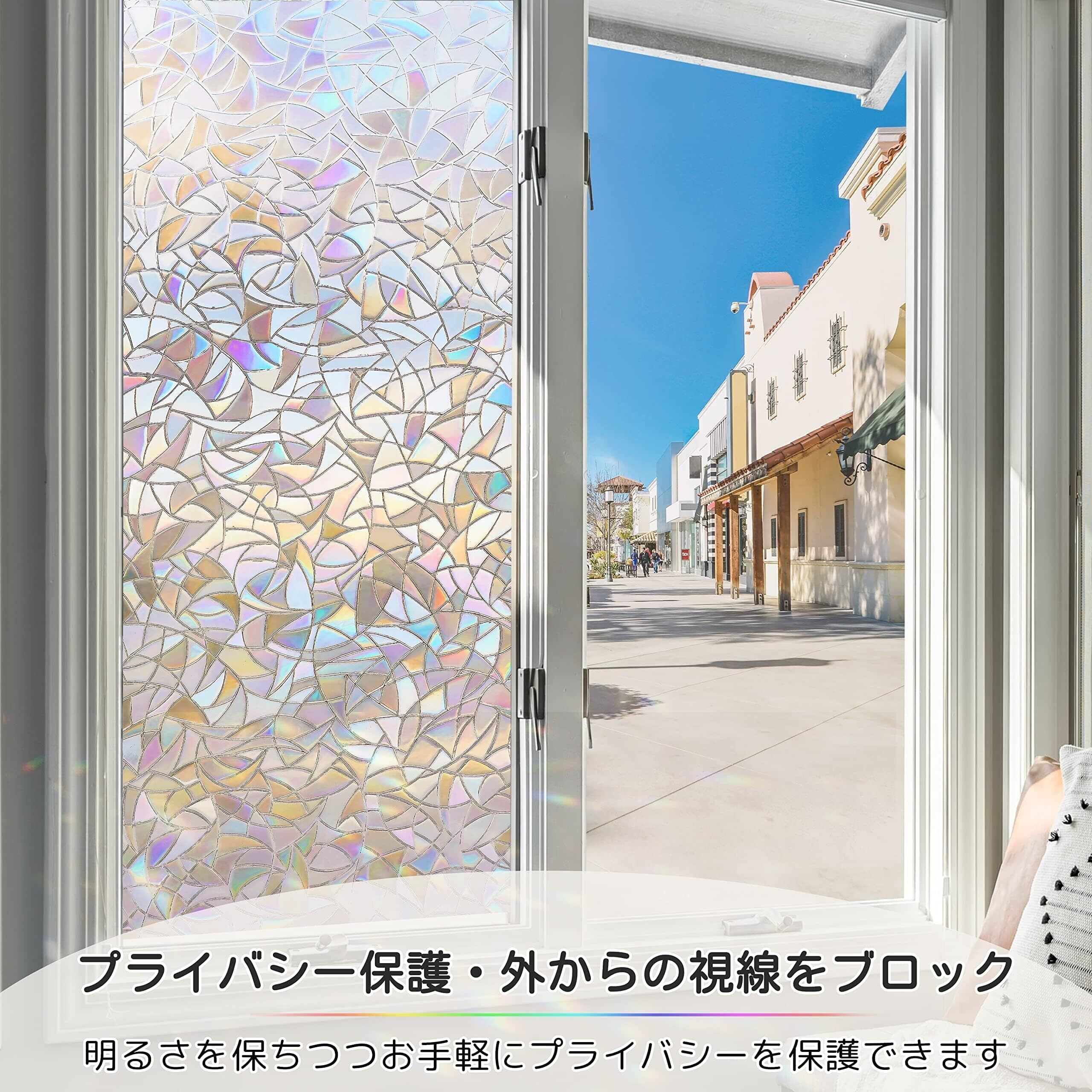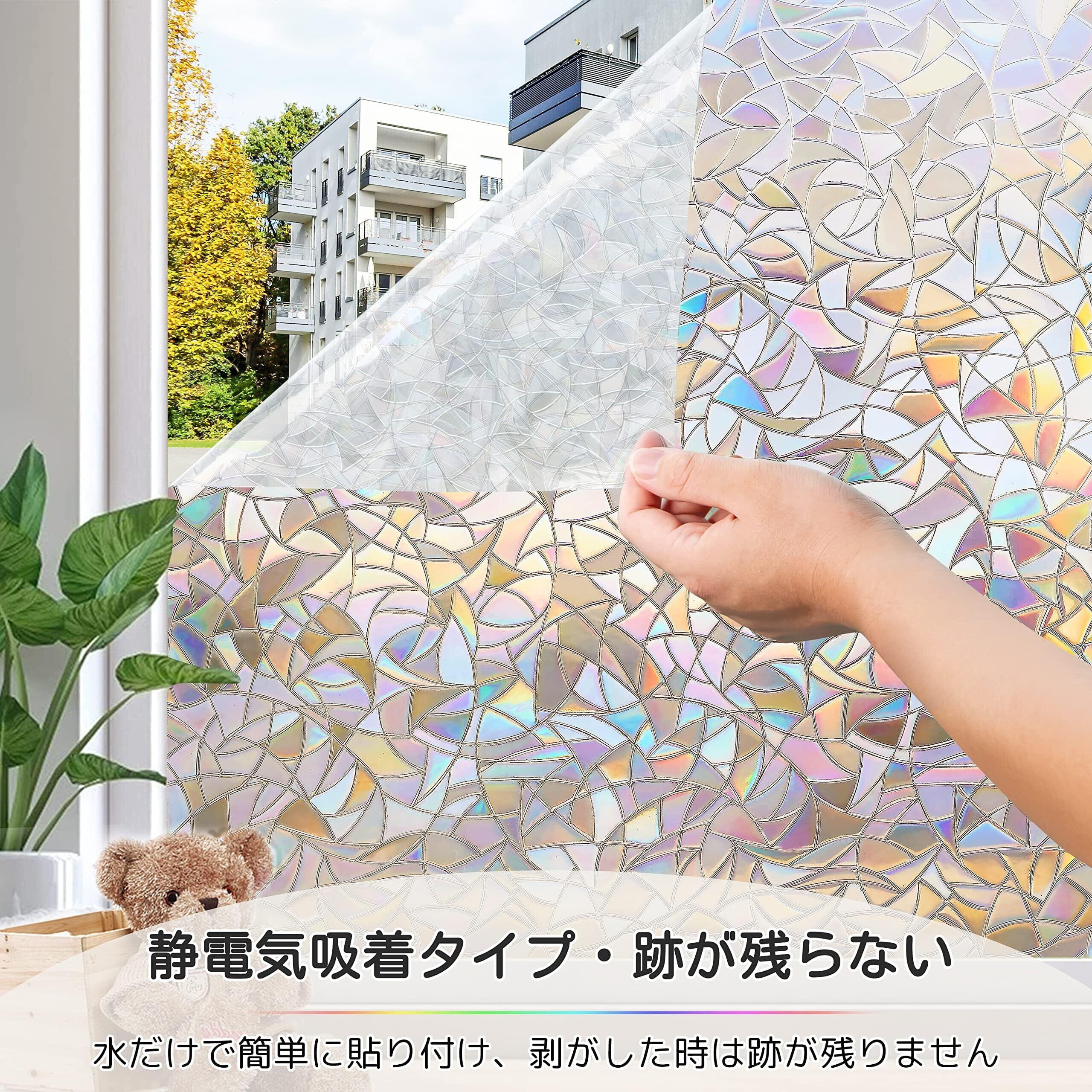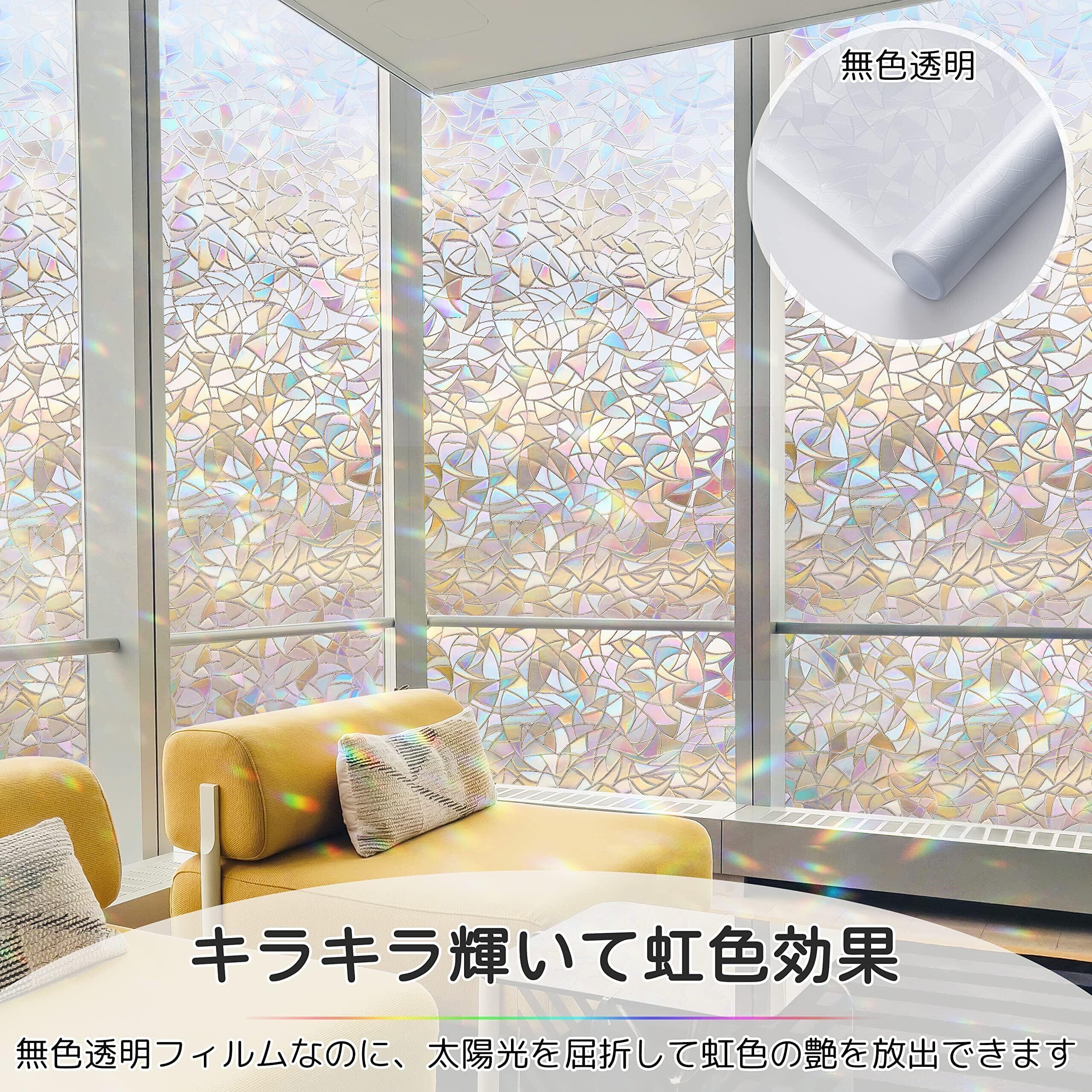 Homein ステンドグラスシール 窓ガラス 目隠しシート おしゃれ窓フィルム uvカツト 装飾 光に当たると虹色の輝きでキラキラ 水で貼る 剥がせる 結露防止 ガラス飛散防止 めかくしシート 簡単貼り付け 網入りガラスも適用 44.5x300cm | hananoki