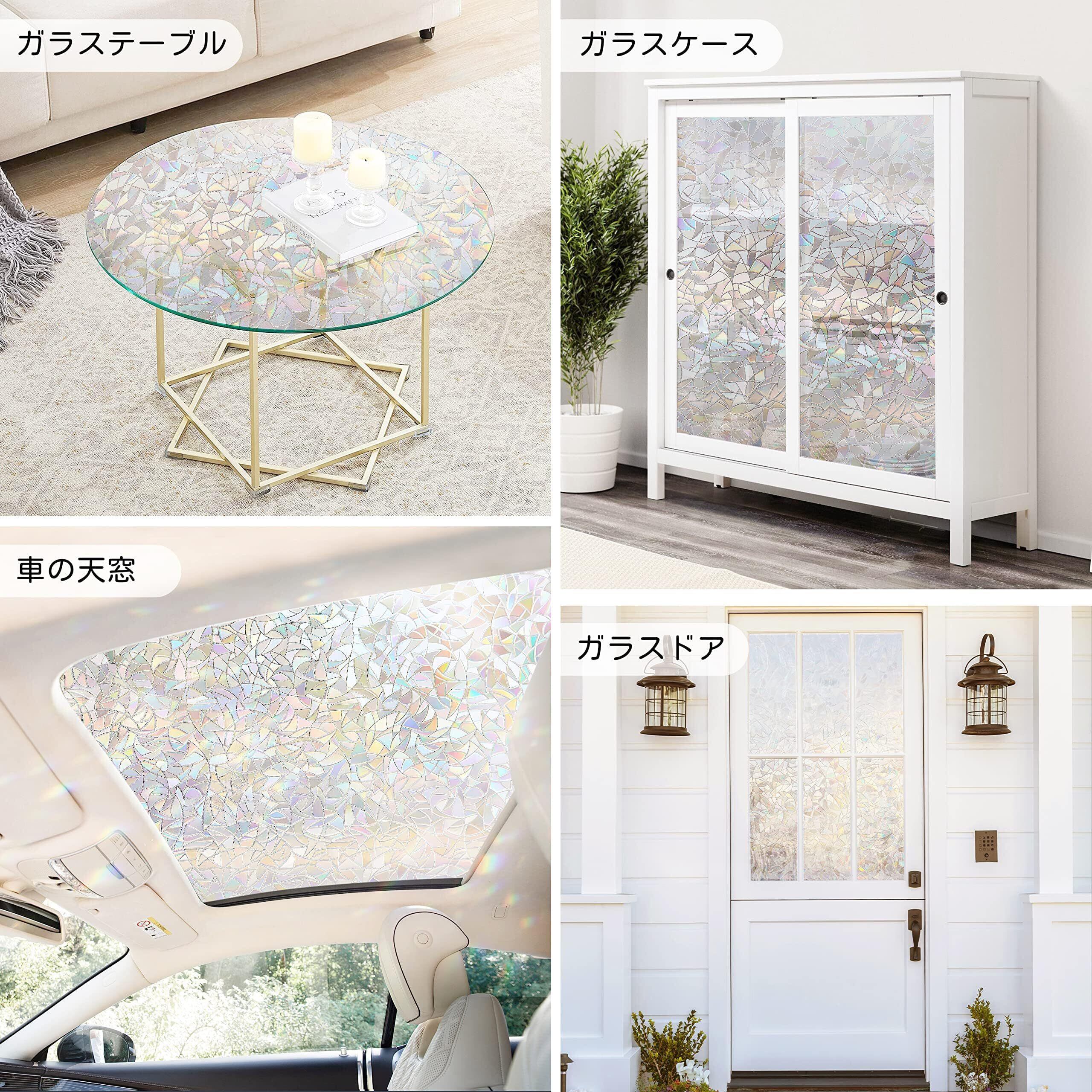 【ステンドグラスシール、インテリア効果大】モダンな3D柄デザインで、光を屈折して虹色の艶を放出します。キラキラ輝いて、虹のように部屋に映るとすごく綺麗です。光が強いほど虹色効果がもっと華麗です。店舗、カフェ、バーなどの魅力が必要な場所におすすめ。