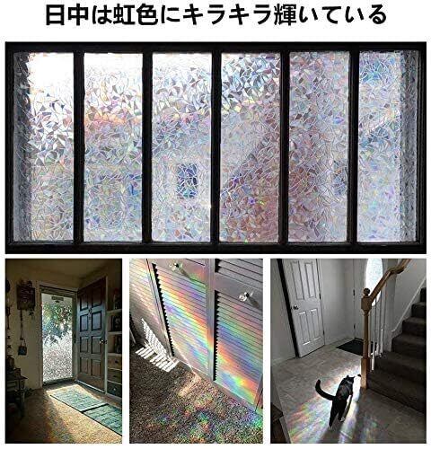 Homein ステンドグラスシール 窓ガラス 目隠しシート おしゃれ窓フィルム uvカツト 装飾 光に当たると虹色の輝きでキラキラ 水で貼る 剥がせる 結露防止 ガラス飛散防止 めかくしシート 簡単貼り付け 網入りガラスも適用 44.5x300cm