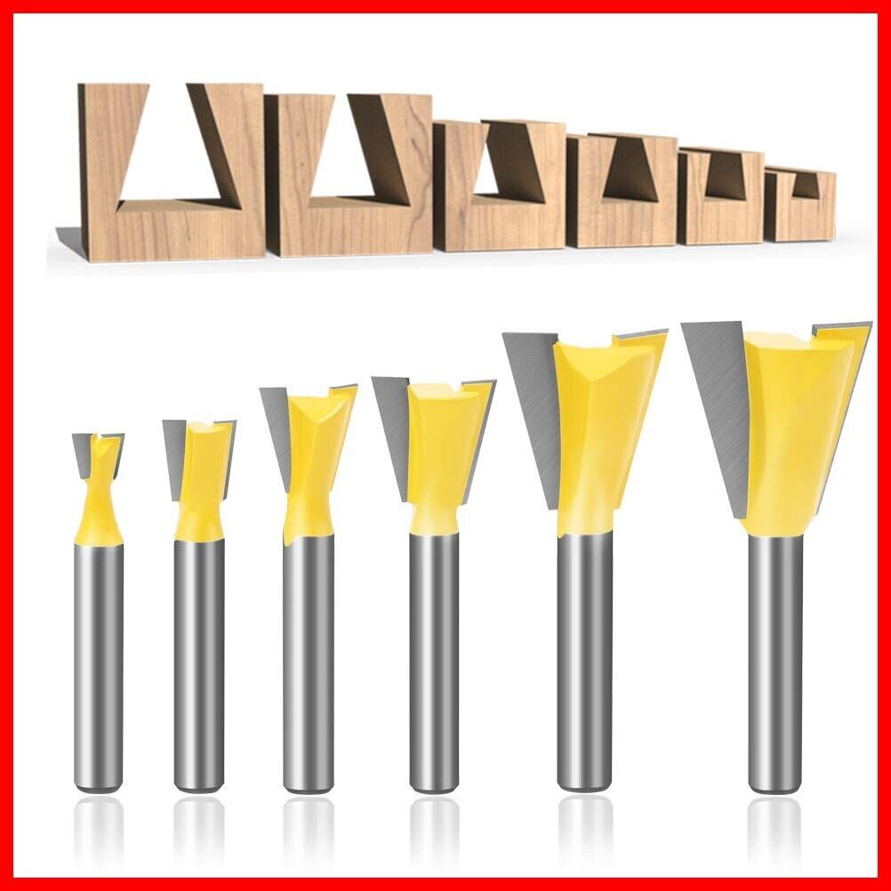 Wolfride 6本セット 超硬刃ルーター·トリマービット 1/4インチ アリ錐·アリ溝ビット 工業級品質 6.35mmシャンク径 ほぞカッター トリマー替刃 溝ビット 切削工具 戸板彫刻 木工用 | hananoki