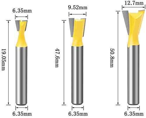 【軸径*刃幅】Wolfride 超硬刃ルーター·トリマービット アリ錐·アリ溝ビット 6.35mmシャンク径 ほぞカッター トリマー替刃 溝ビット 切削工具 戸板彫刻 木工用 6本セット